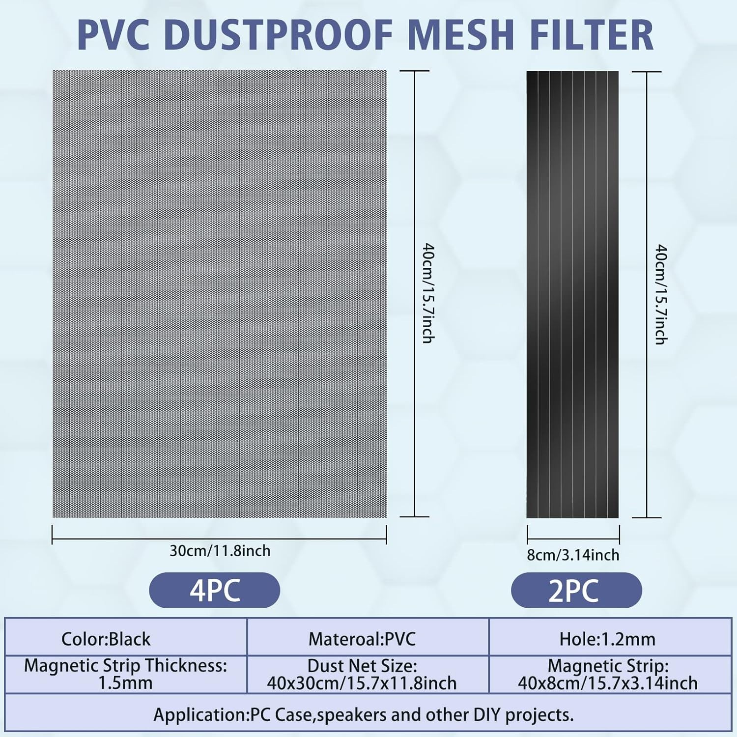 4 Pack 400X300Mm DIY PC Case Dust Filter, 1.2Mm Hole, PVC Dustproof Mesh Filte