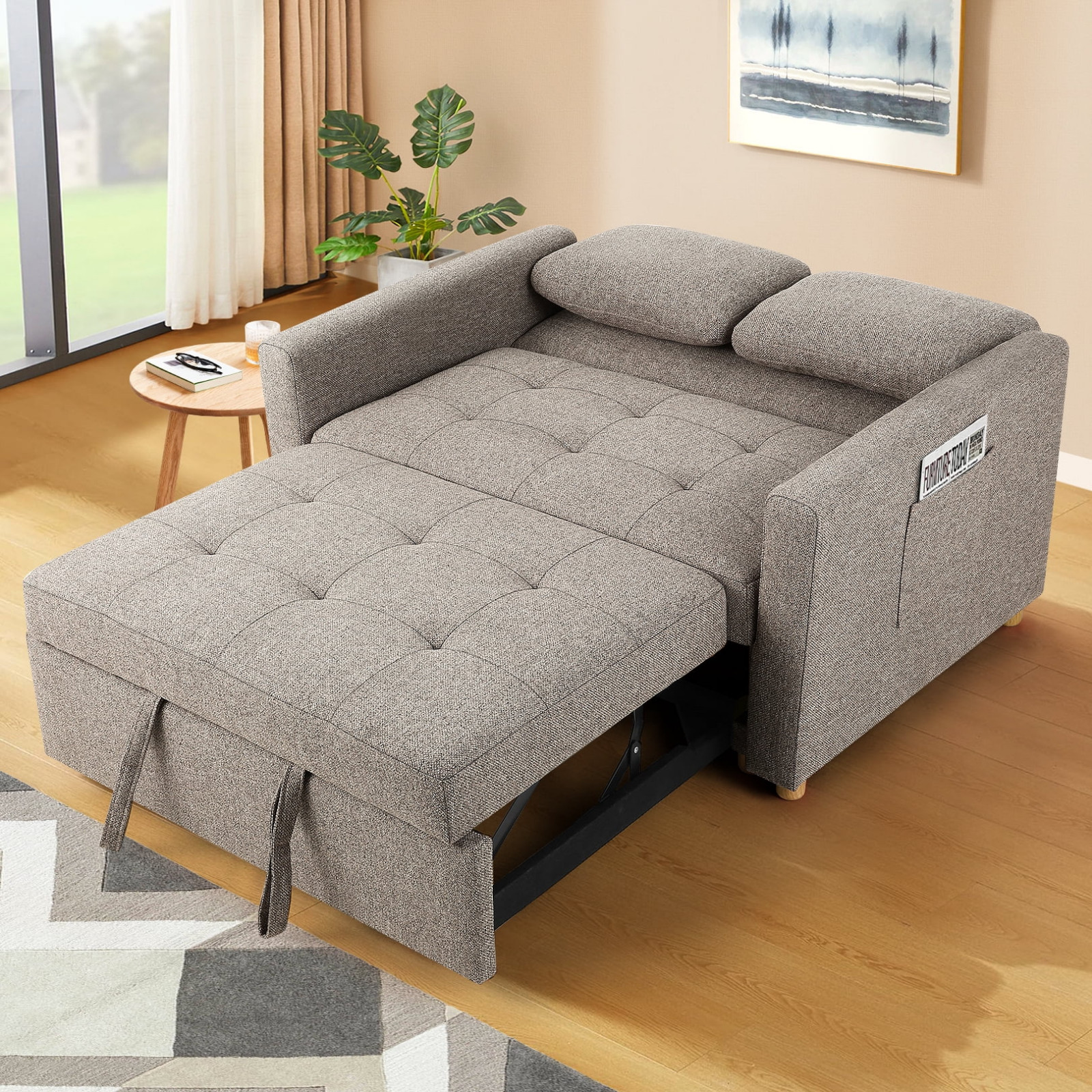 как выглядит 49" 3 in 1 Convertible Sofa Bed Couch Pull Out Bed w/Adjustable Backrest Pillow фото