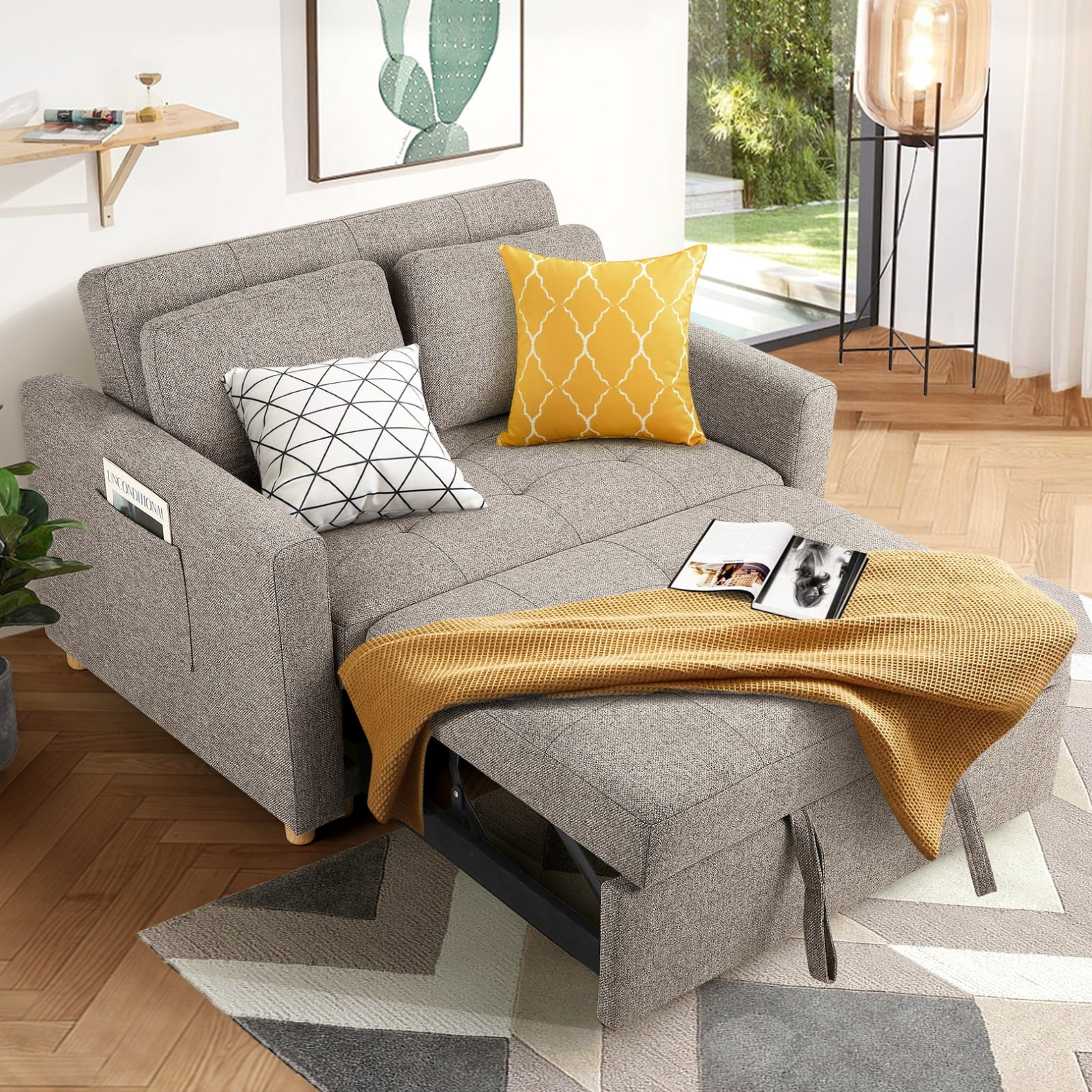 49 3 in 1 Convertible Sofa Bed Couch Pull Out Bed w/Adjustable Backrest Pillow