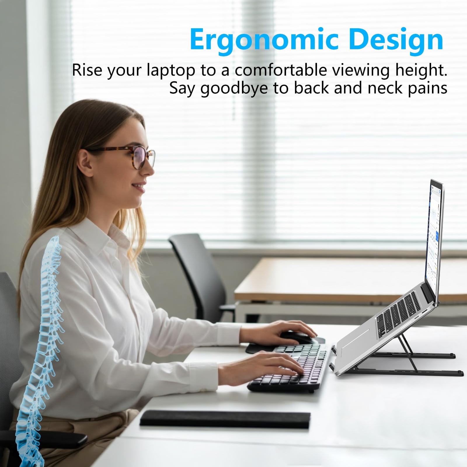 Adjustable Laptop Stand, Portable Laptop Riser for Desk, ABS Silicone Foldabl...