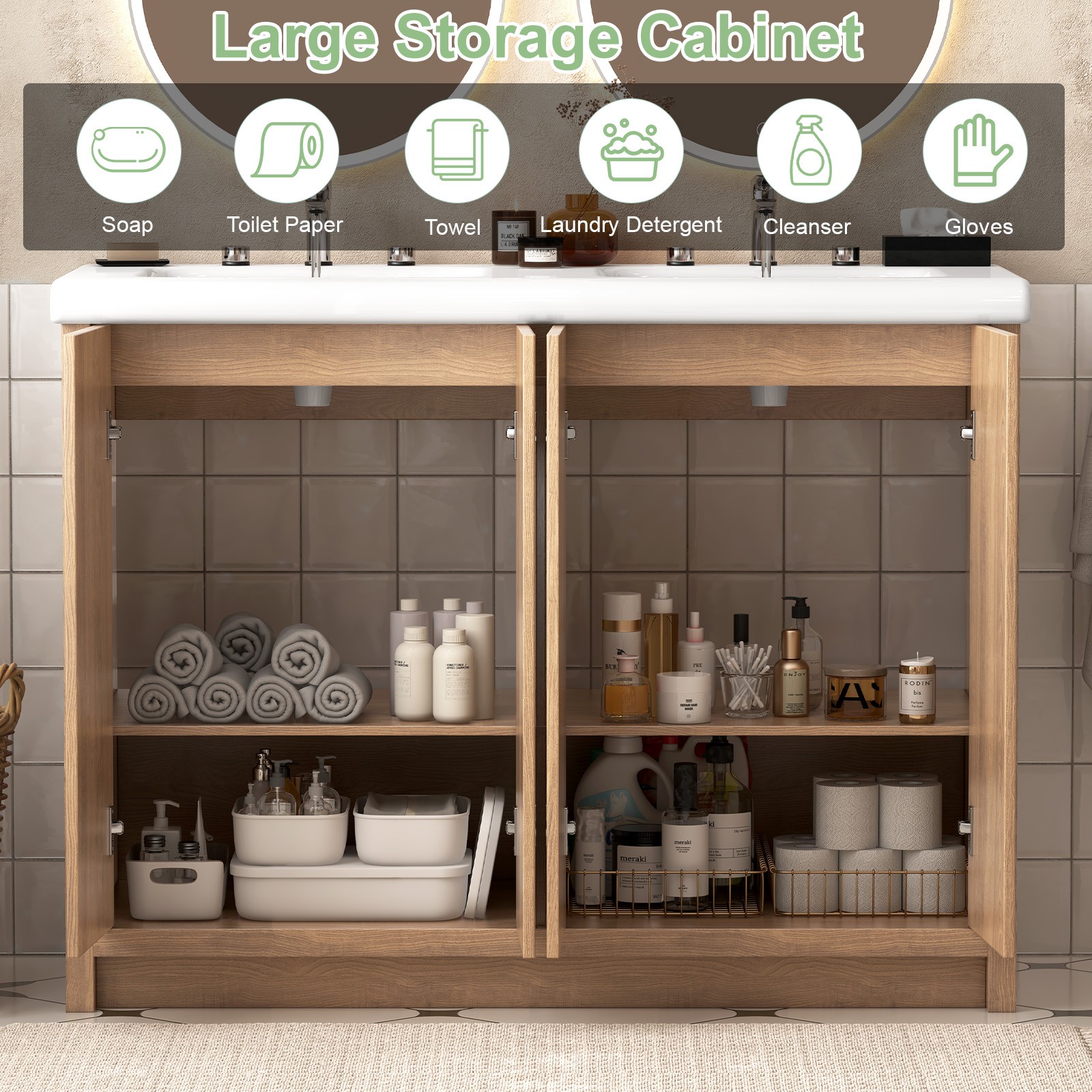 47.3 Inch Bathroom Vanity Double Ceramic Sink Freestanding Cabinet Storage