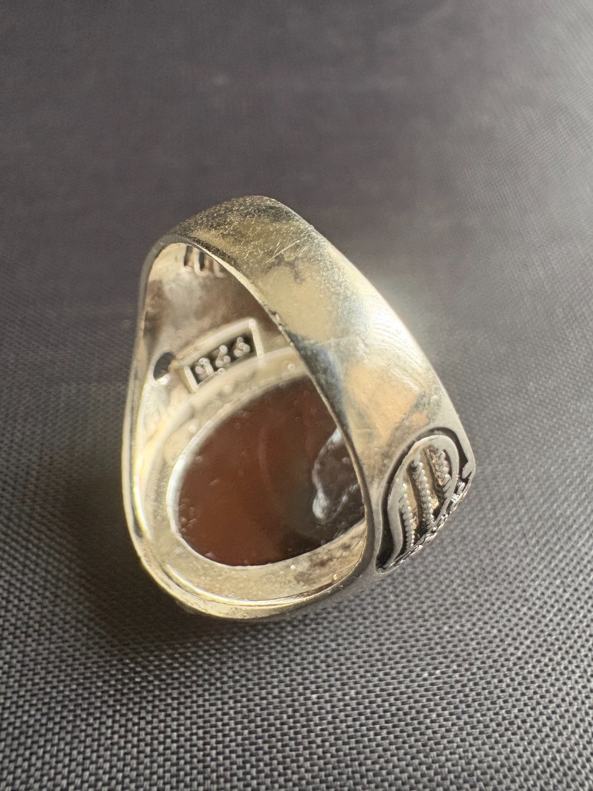 как выглядит 925 Sterling Silver Ring Yemeni Aqeeq Agate Ring Handcrafted Ring Size 9.5 US фото