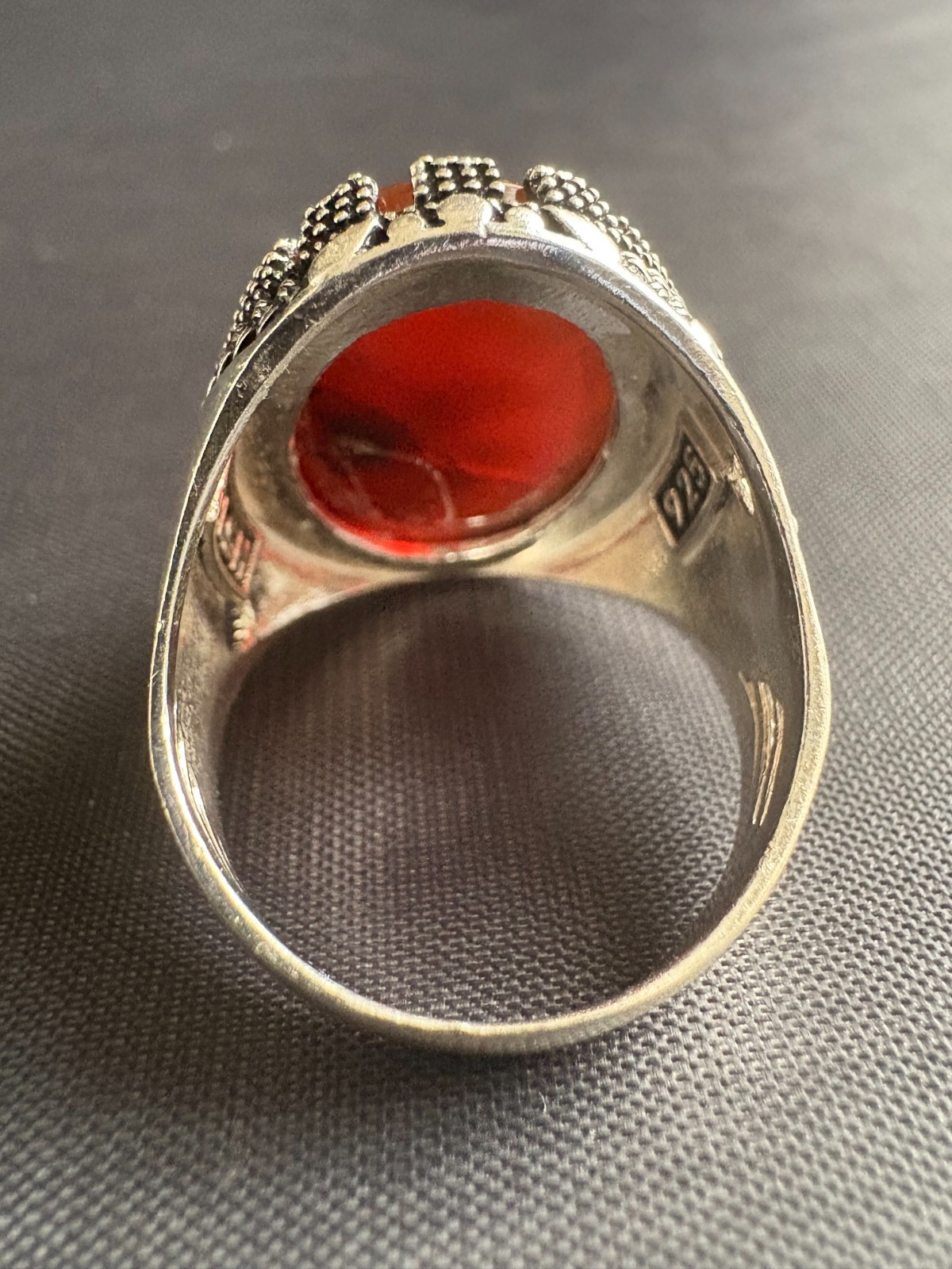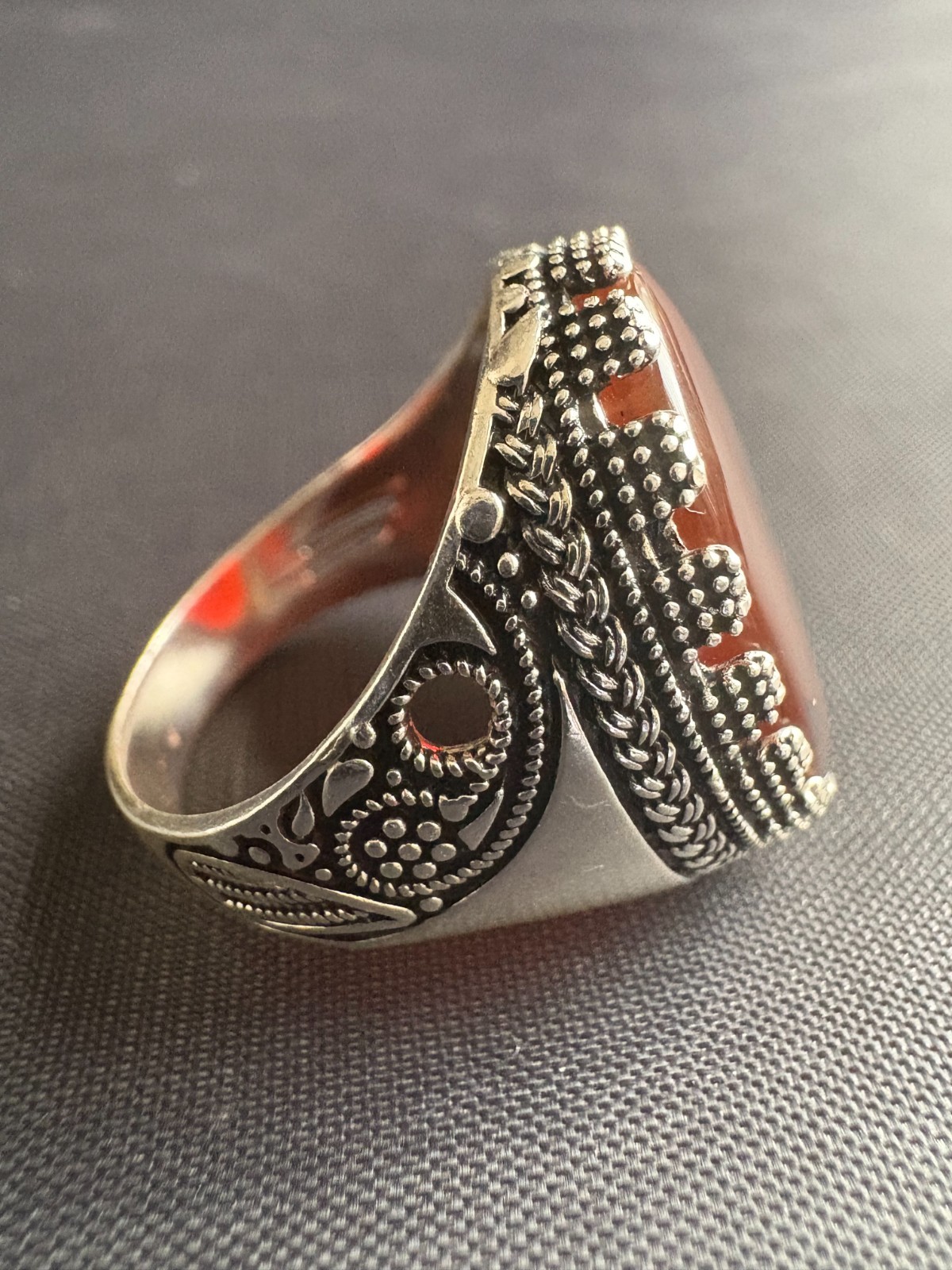 925 Sterling Silver Ring Yemeni Aqeeq Agate Ring Handcrafted Ring Size 9.5 US