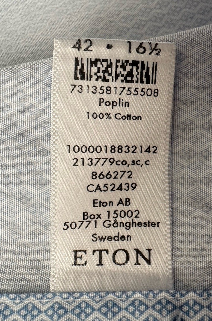 как выглядит Eton Mens Light Blue Contemporary Regular Fit Poplin Dress Shirt 42 16.5 фото