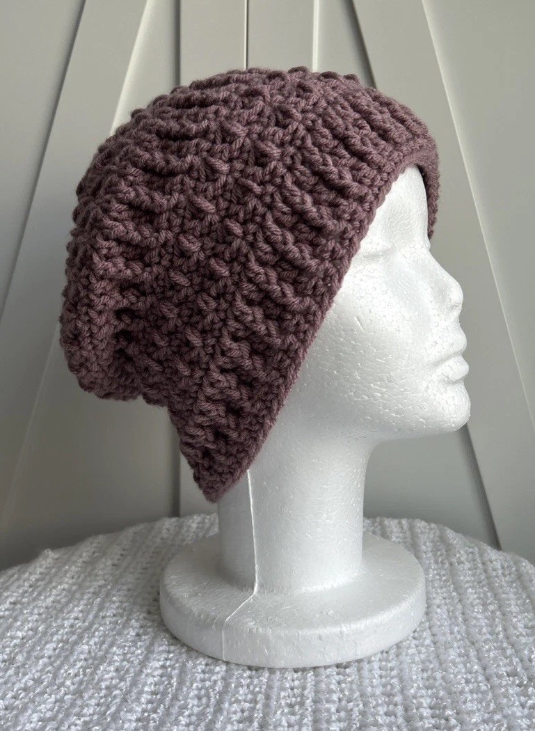 Crochet Beanie Hat Slightly Slouchy Mauve Purple Unique Handmade Fall Winter