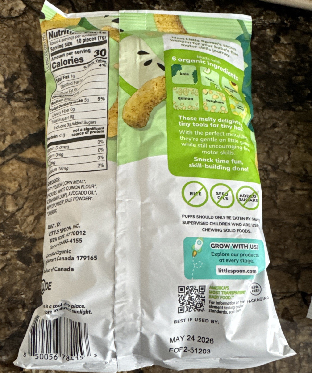 как выглядит 4 Bags Little Spoon Kale Apple Curls With Ancient Grains Meltable Baby Puffs, фото