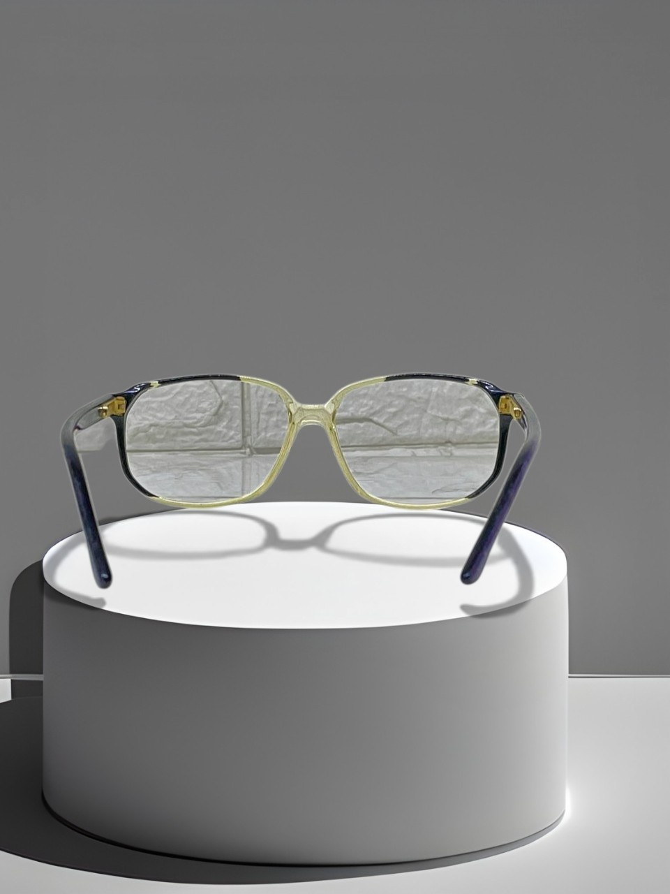 как выглядит Vintage Gloria Fidela Square Eyeglass Frame Purple Yellow Made in France 1980s фото