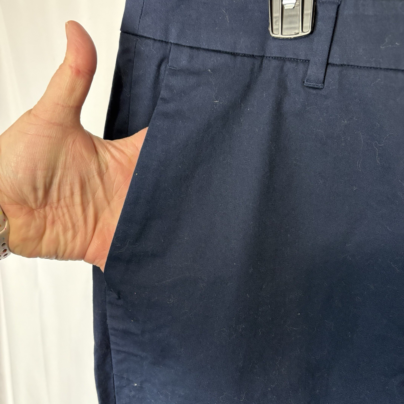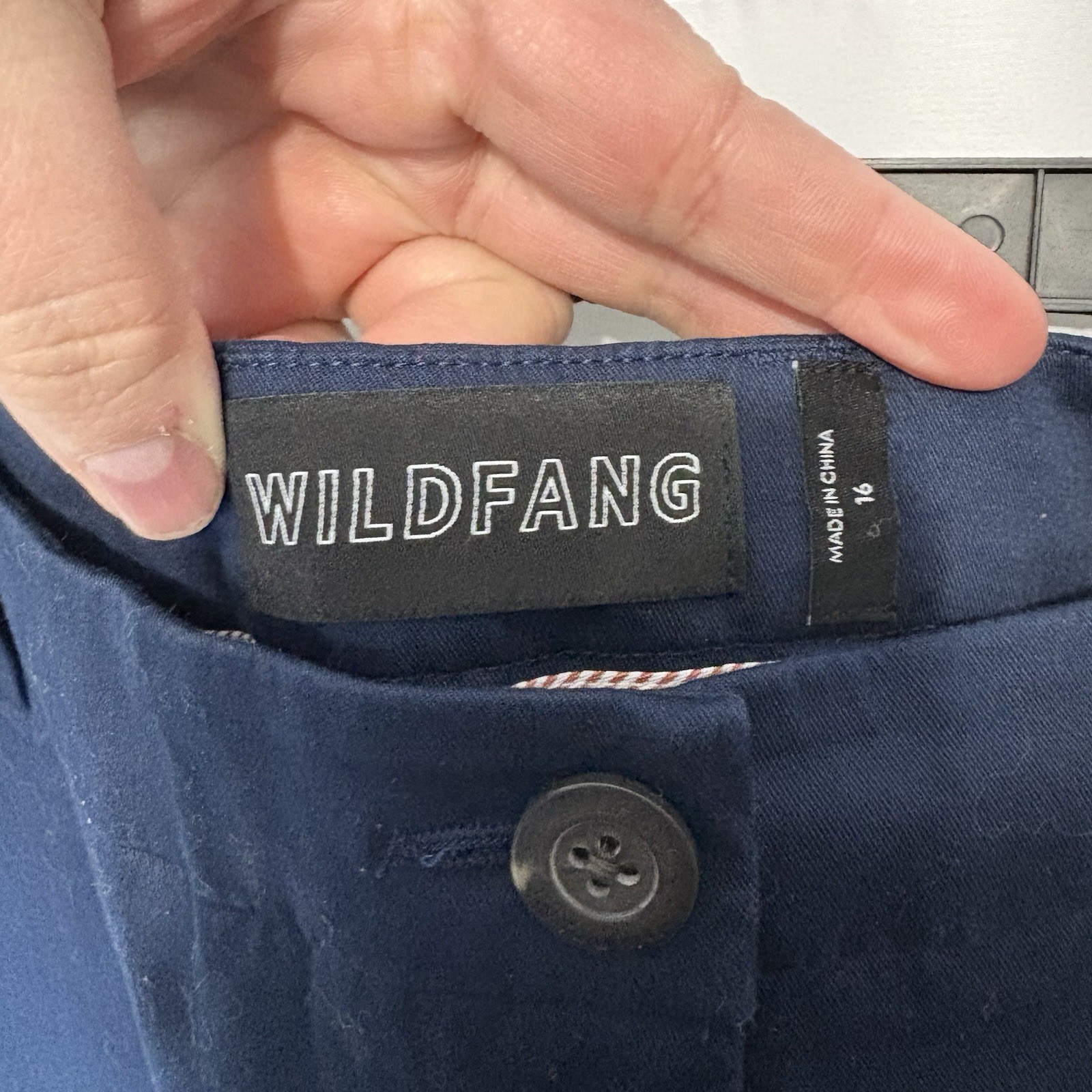 как выглядит Wildfang Pants Womens 16 Navy Blue The Essential Trouser Chino Stretch Cuffed фото