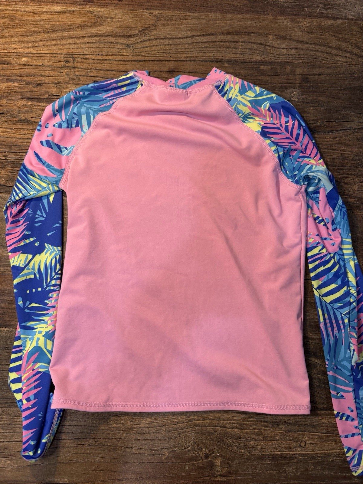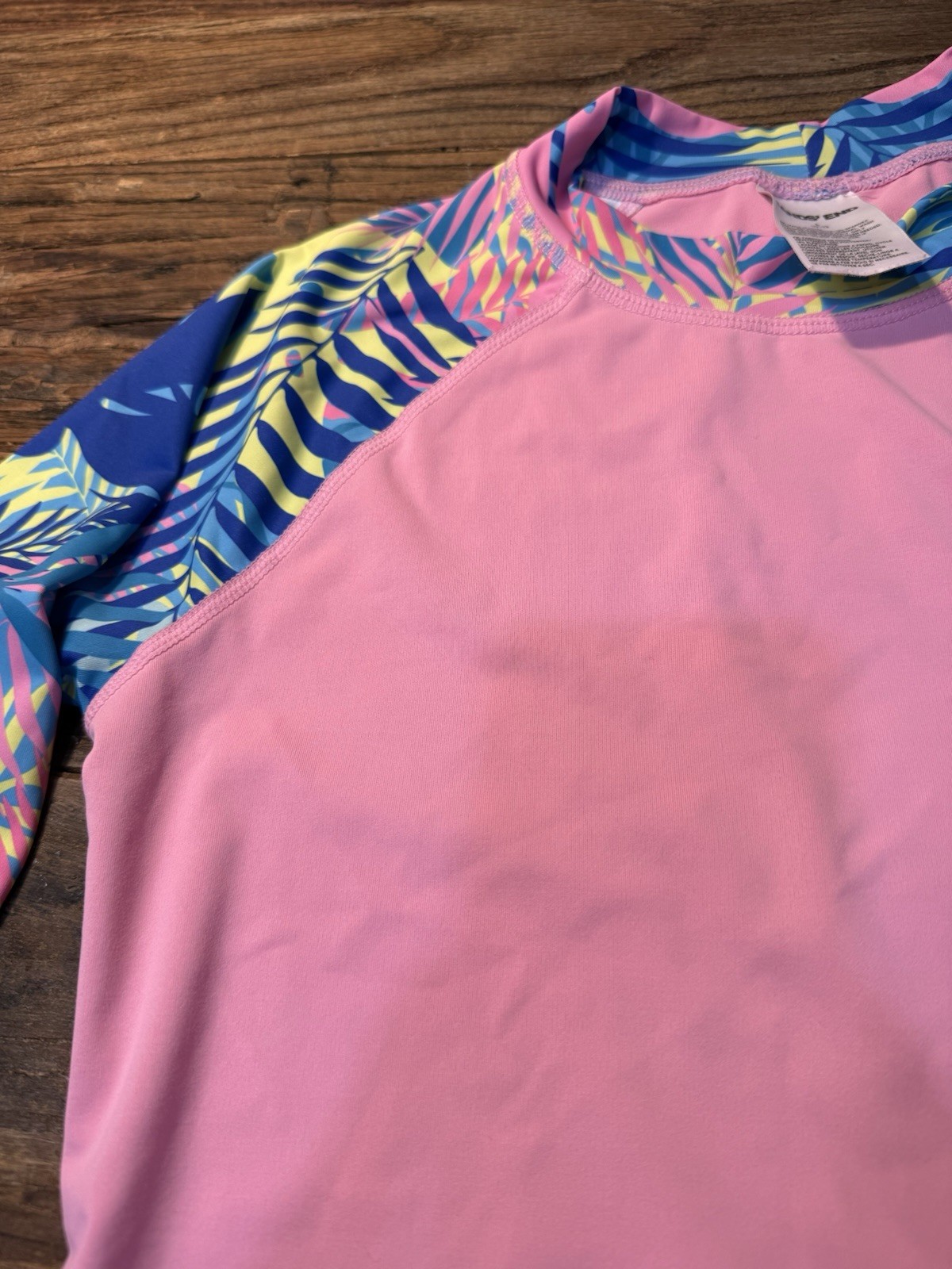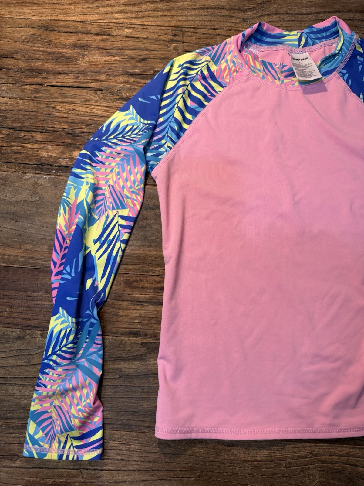 как выглядит Lands End Girls pink tropical long-sleeve rash Guard Size L 10-12 фото