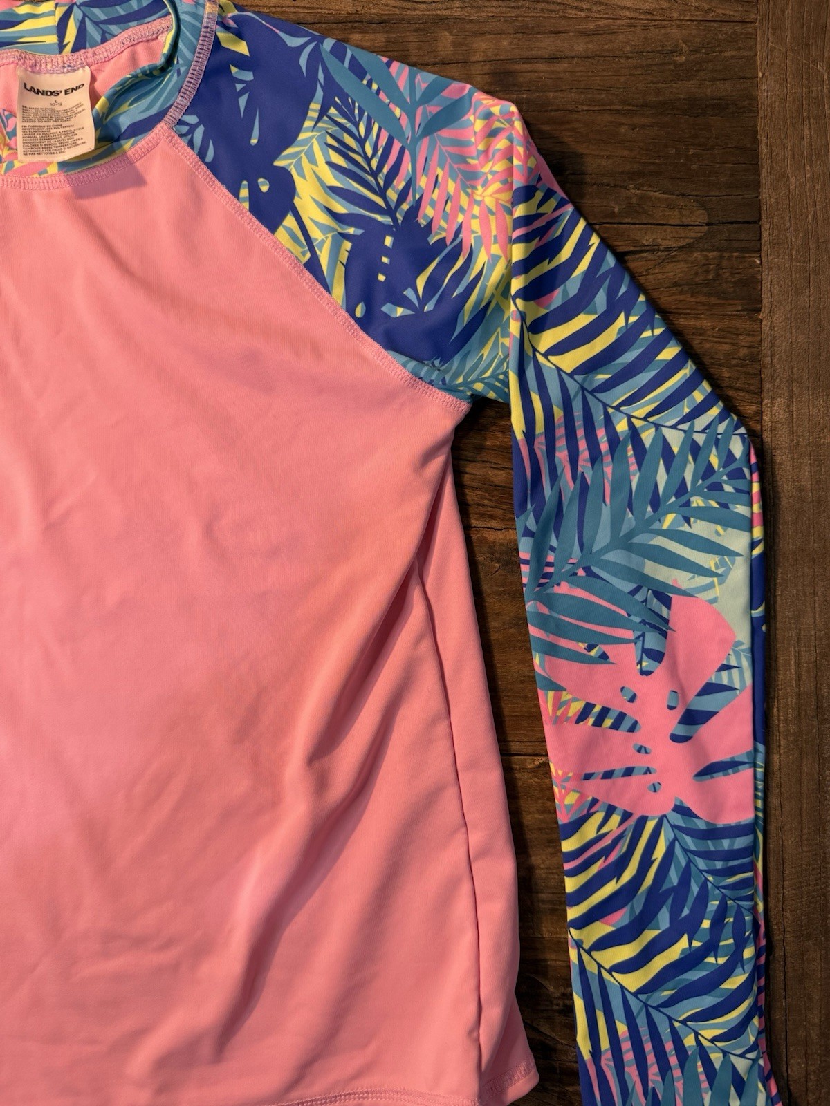Lands' End Girls pink tropical long-sleeve rash Guard Size L 10-12