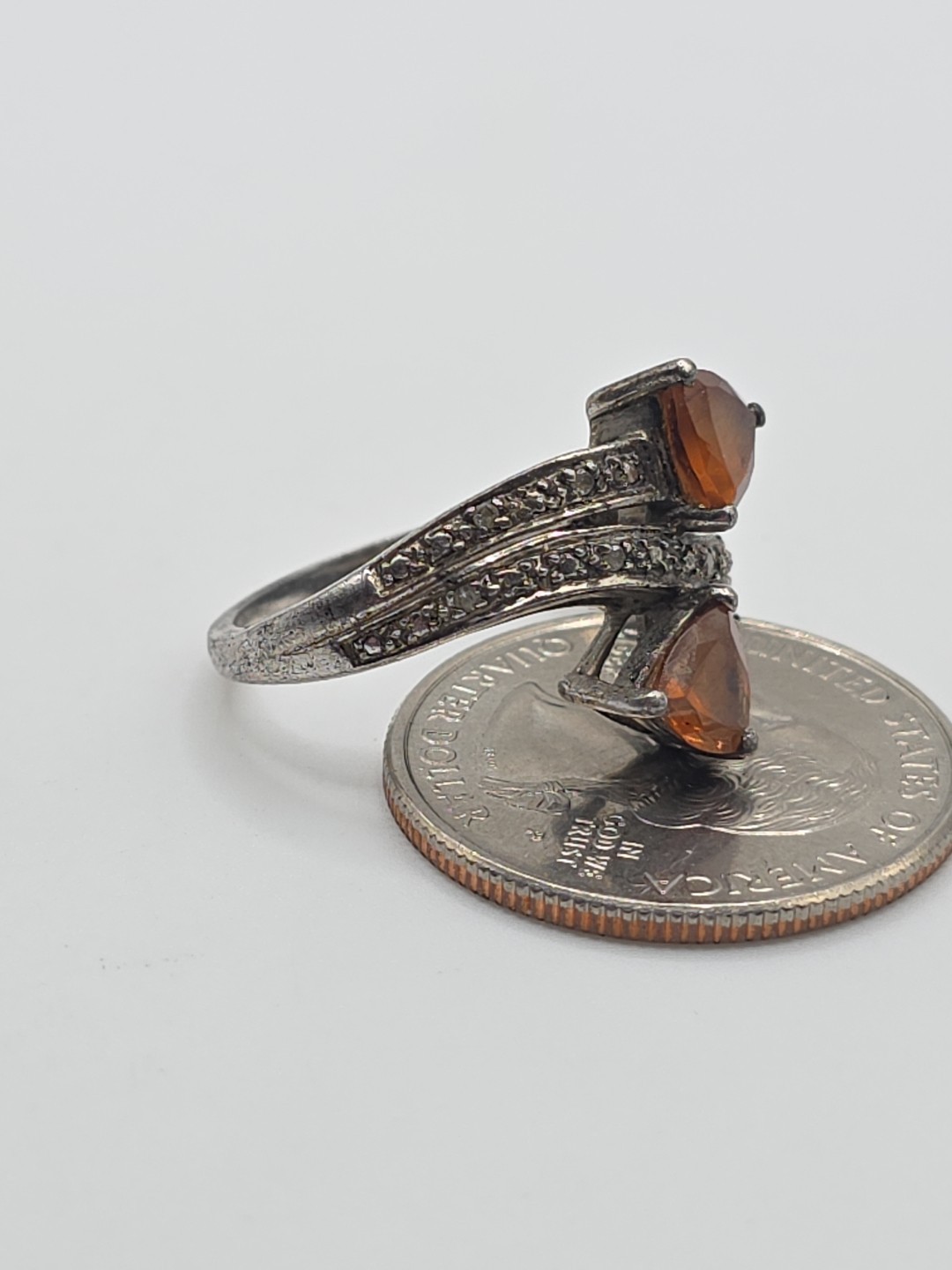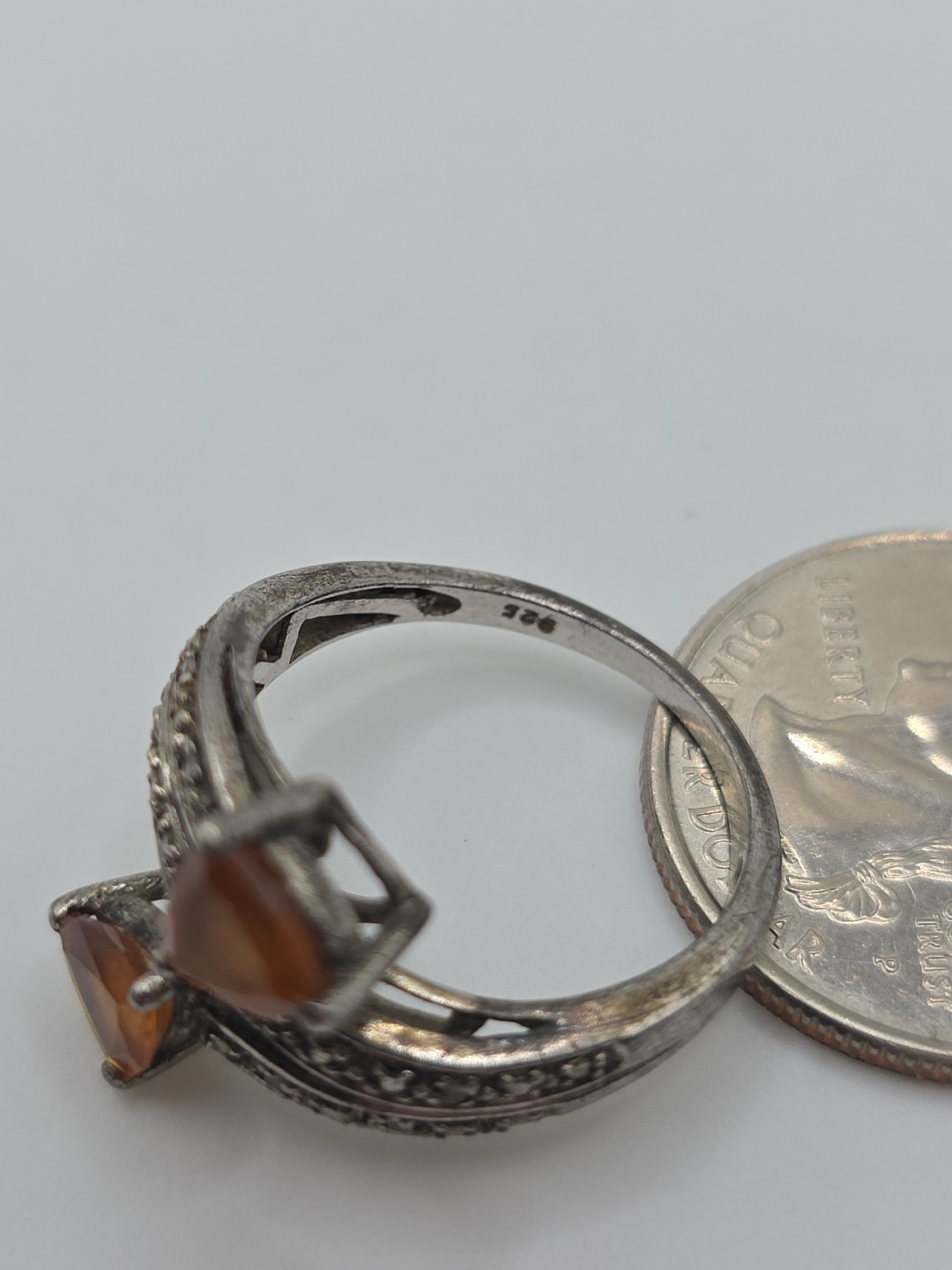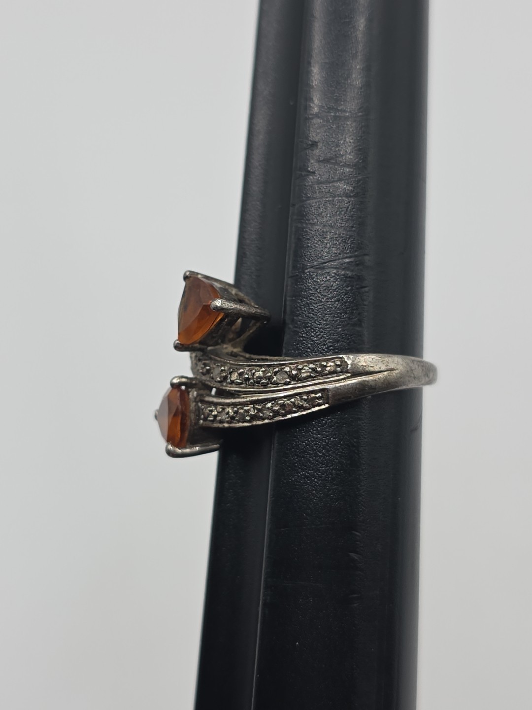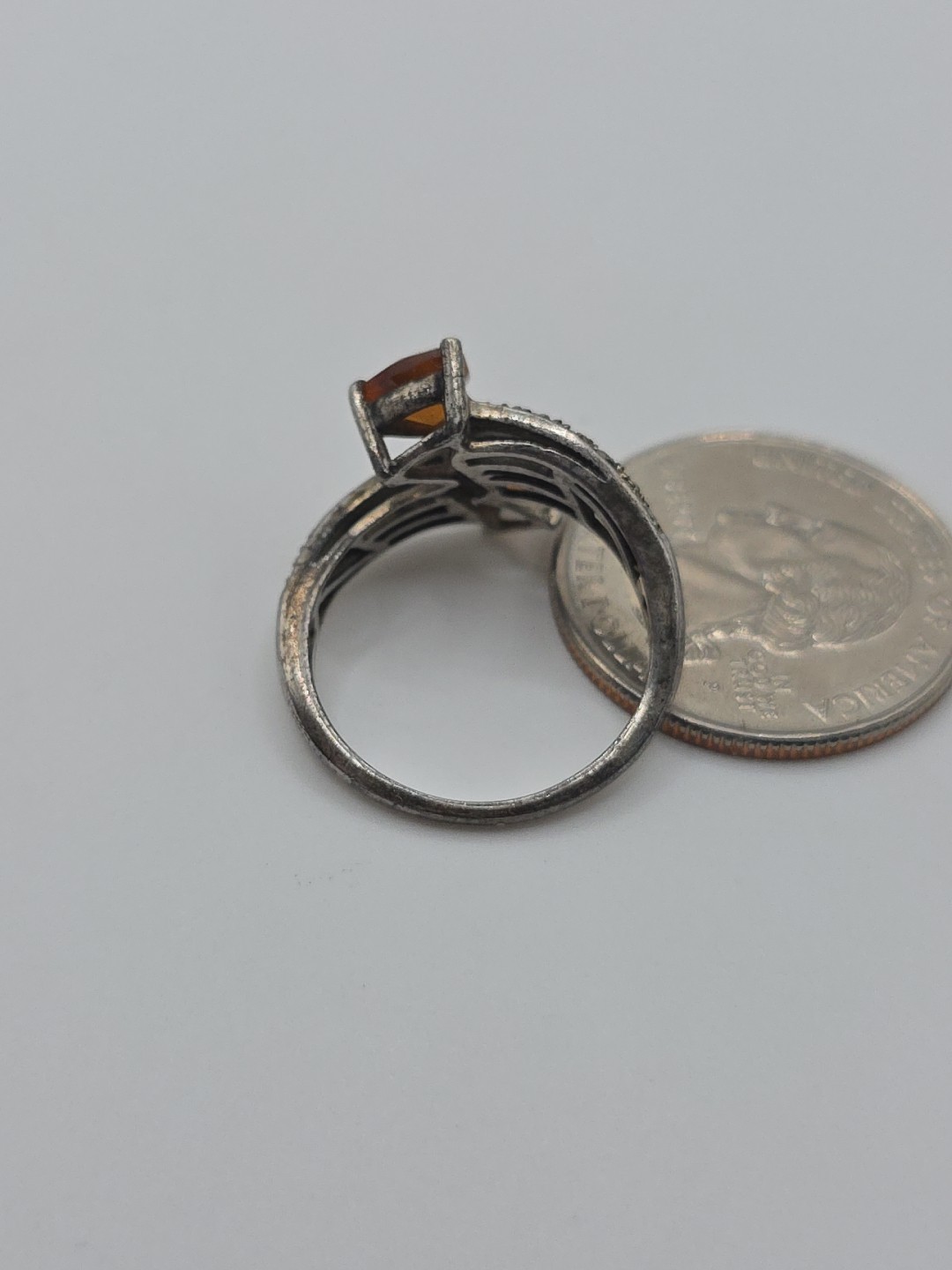 как выглядит Vintage Sterling Silver 925 Orange Citrine Trillion Ring Size 8.25 фото
