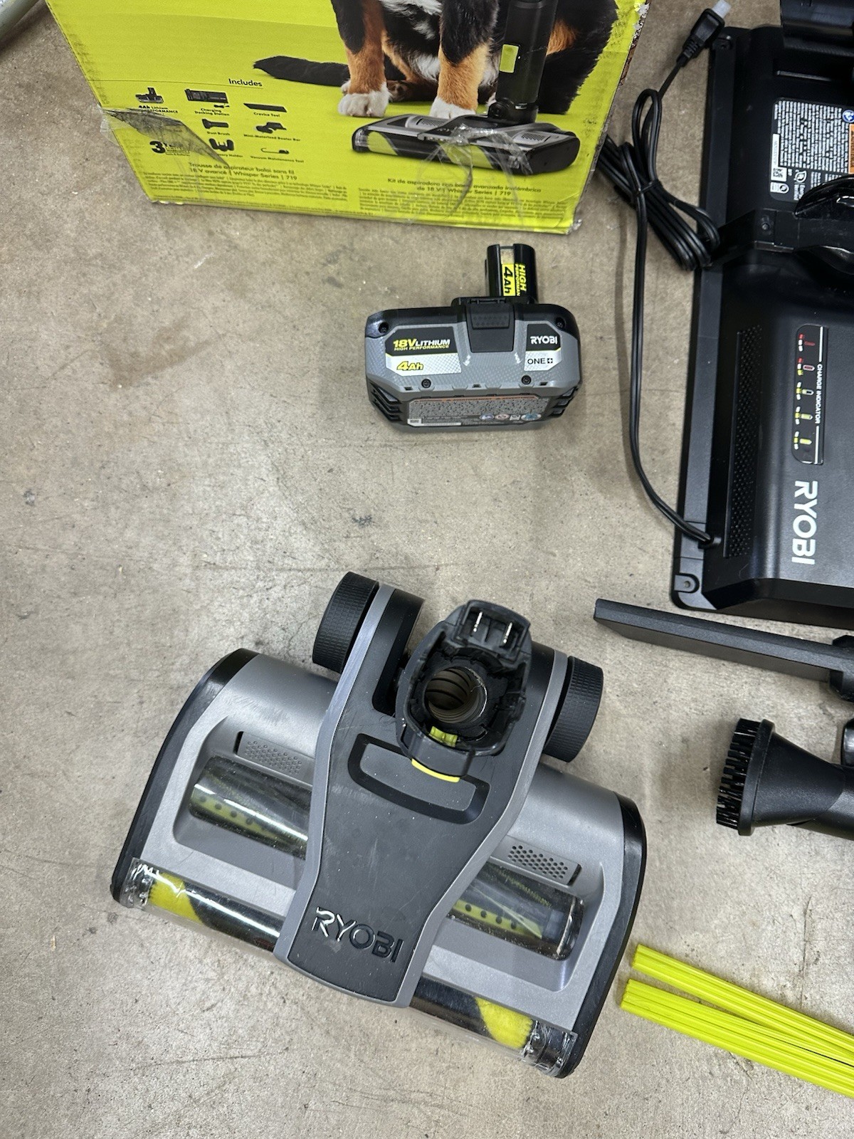 как выглядит Ryobi PBLSV719K One HP Advanced WHISPER Stick Vacuum Kit Used фото
