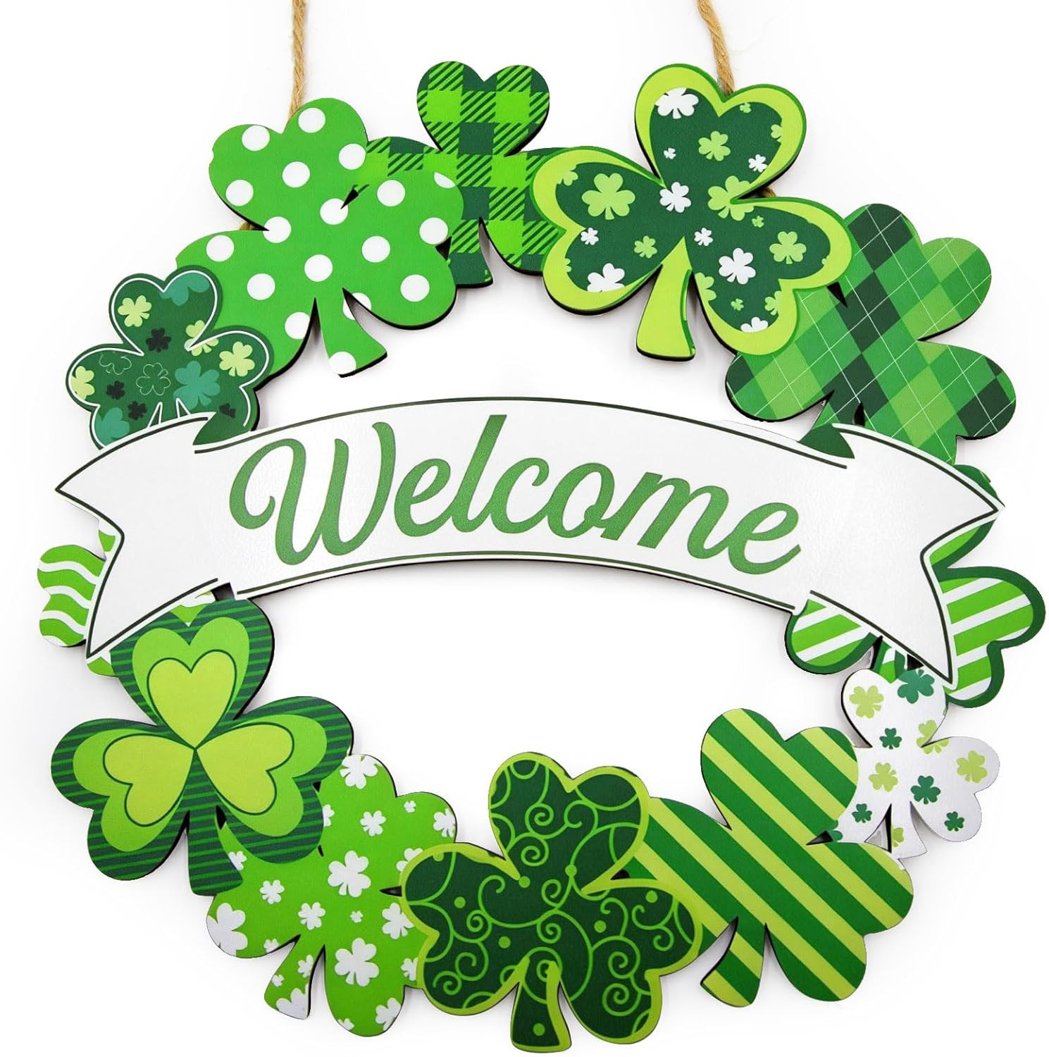 St. Patrick's Day Welcome Sign and Shamrock Door Wreath for Home Decor