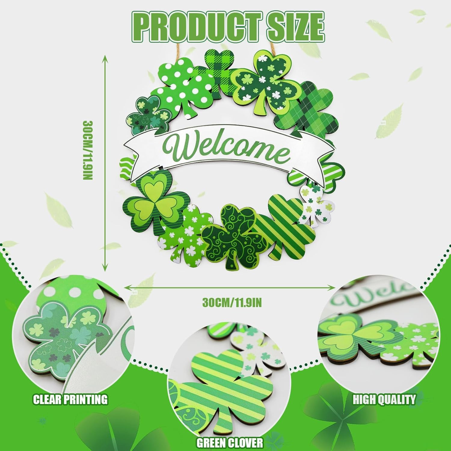 как выглядит St. Patricks Day Welcome Sign and Shamrock Door Wreath for Home Decor фото
