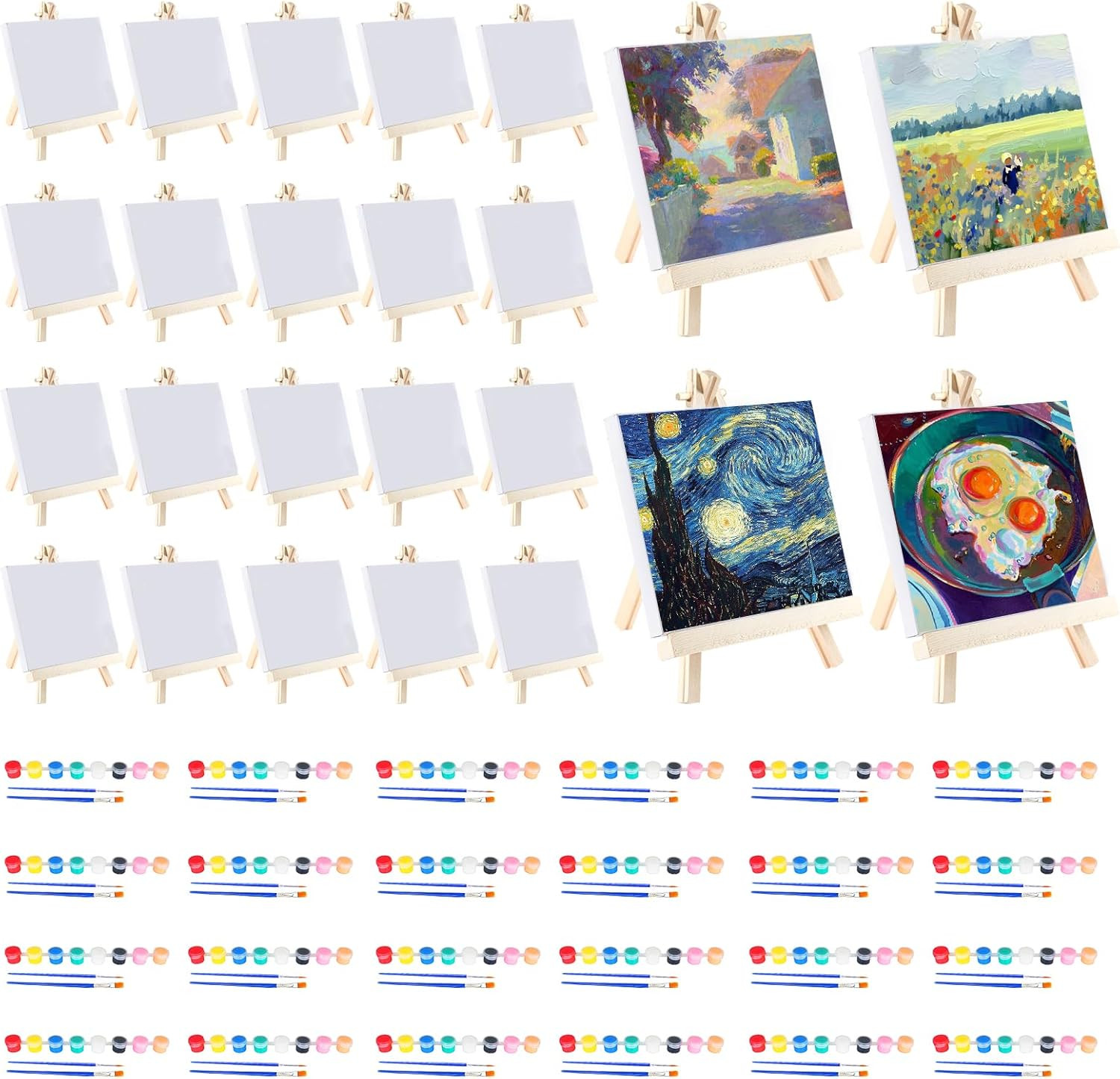 Mini Canvas Art Set with Easels, Acrylic Paints, and Brushes - 24 Pieces