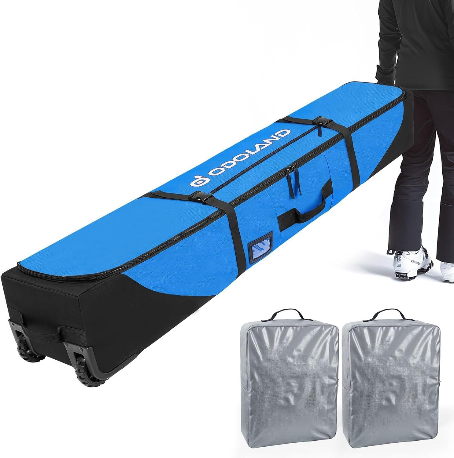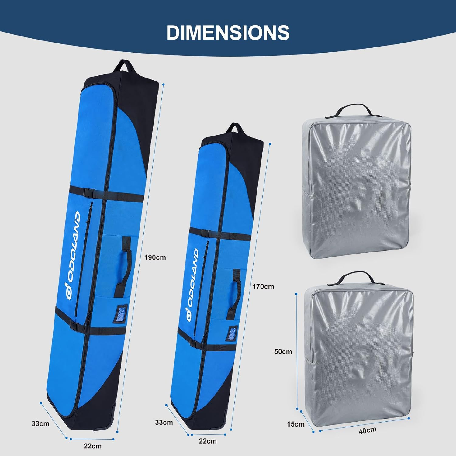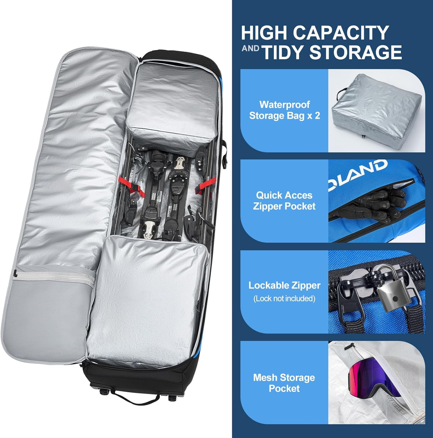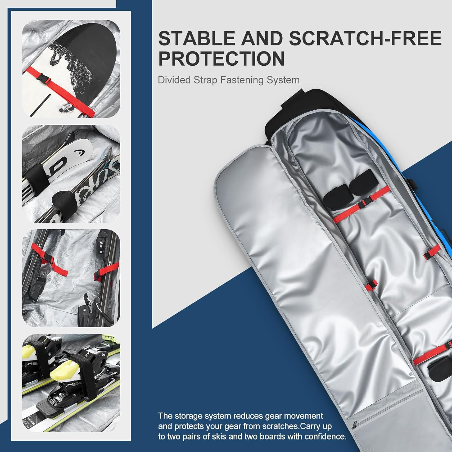 Padded Rolling Ski Bag with Wheels, Fits Skis up to 190cm, Water Resistant