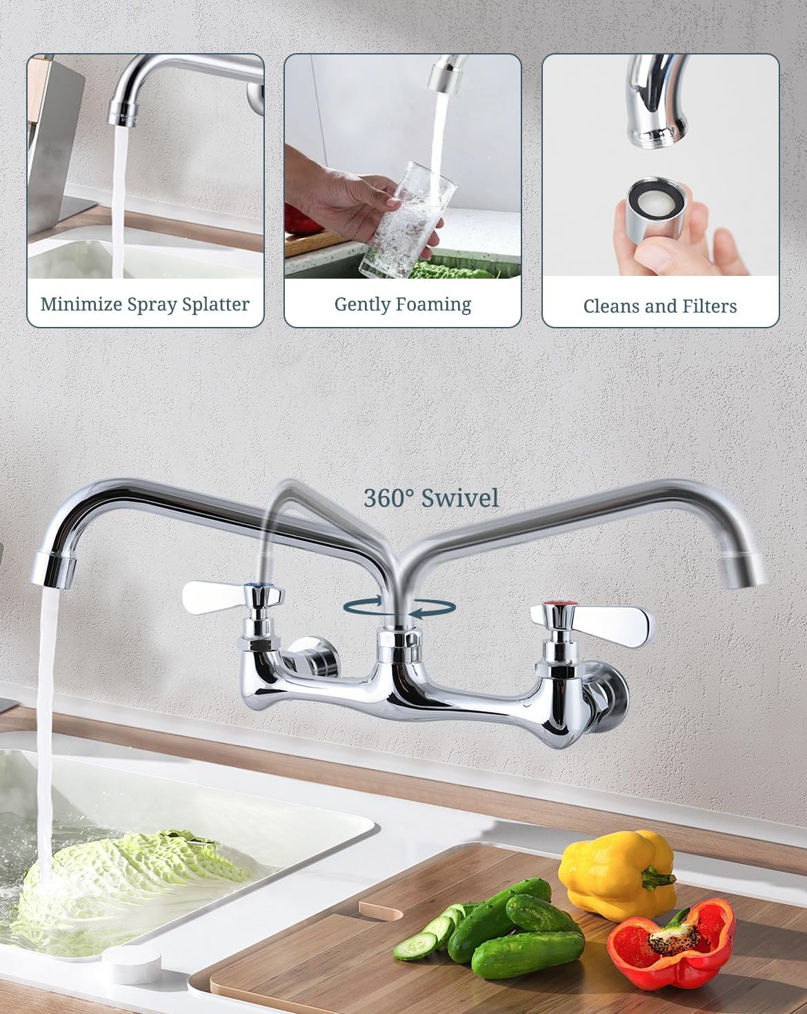 Commercial Grade 8-Inch Swivel Spout Replacement Kit for Kitchen Sink Faucets