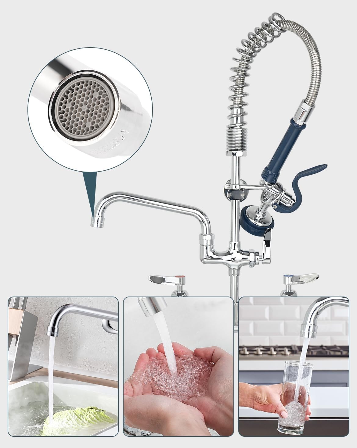 • Commercial Grade 8-Inch Swivel Spout Replacement Kit for Kitchen Sink Faucets