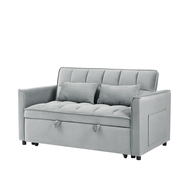 3-in-1 Convertible Sofa Bed 55 Modern Velvet Loveseat Couch w/Adjustable Back