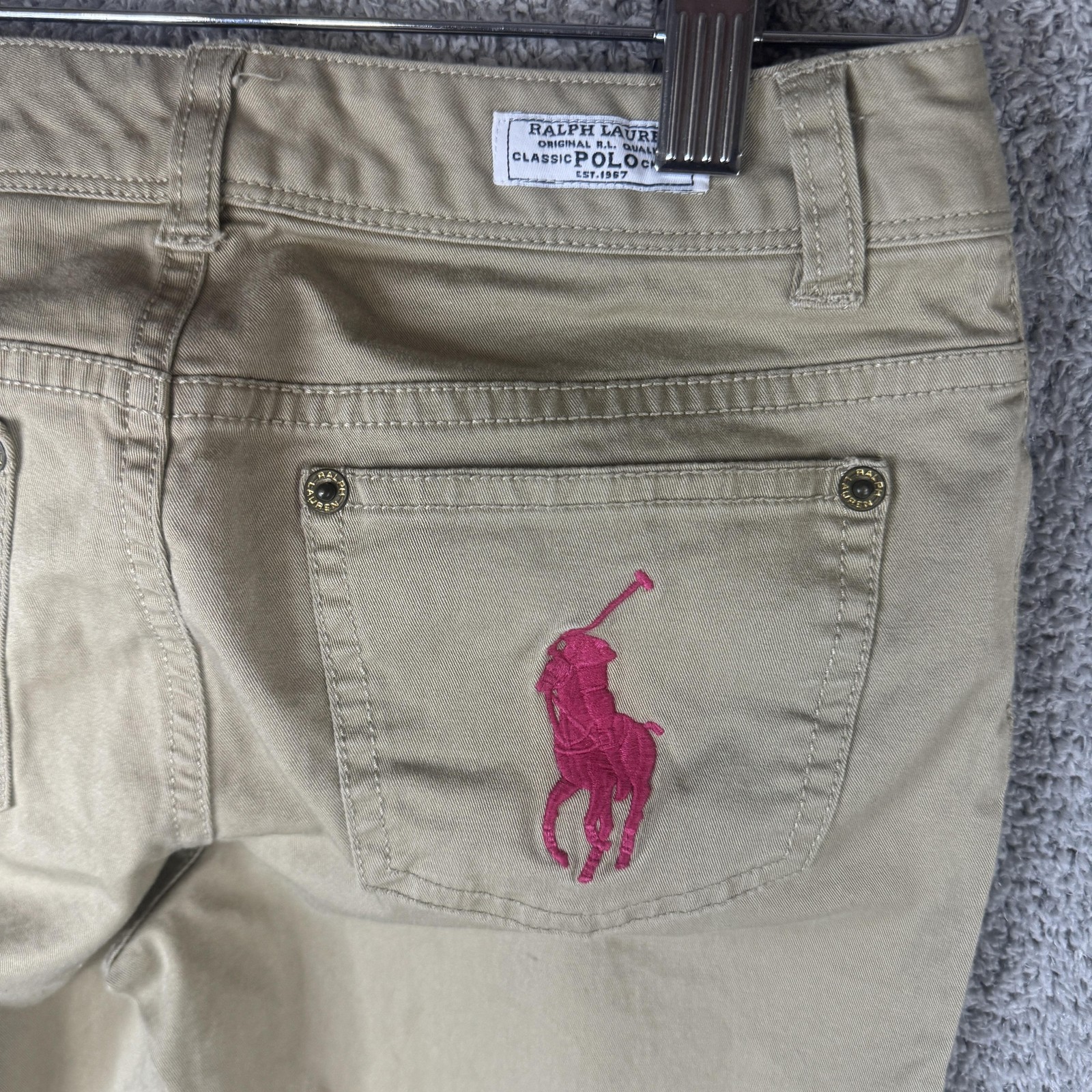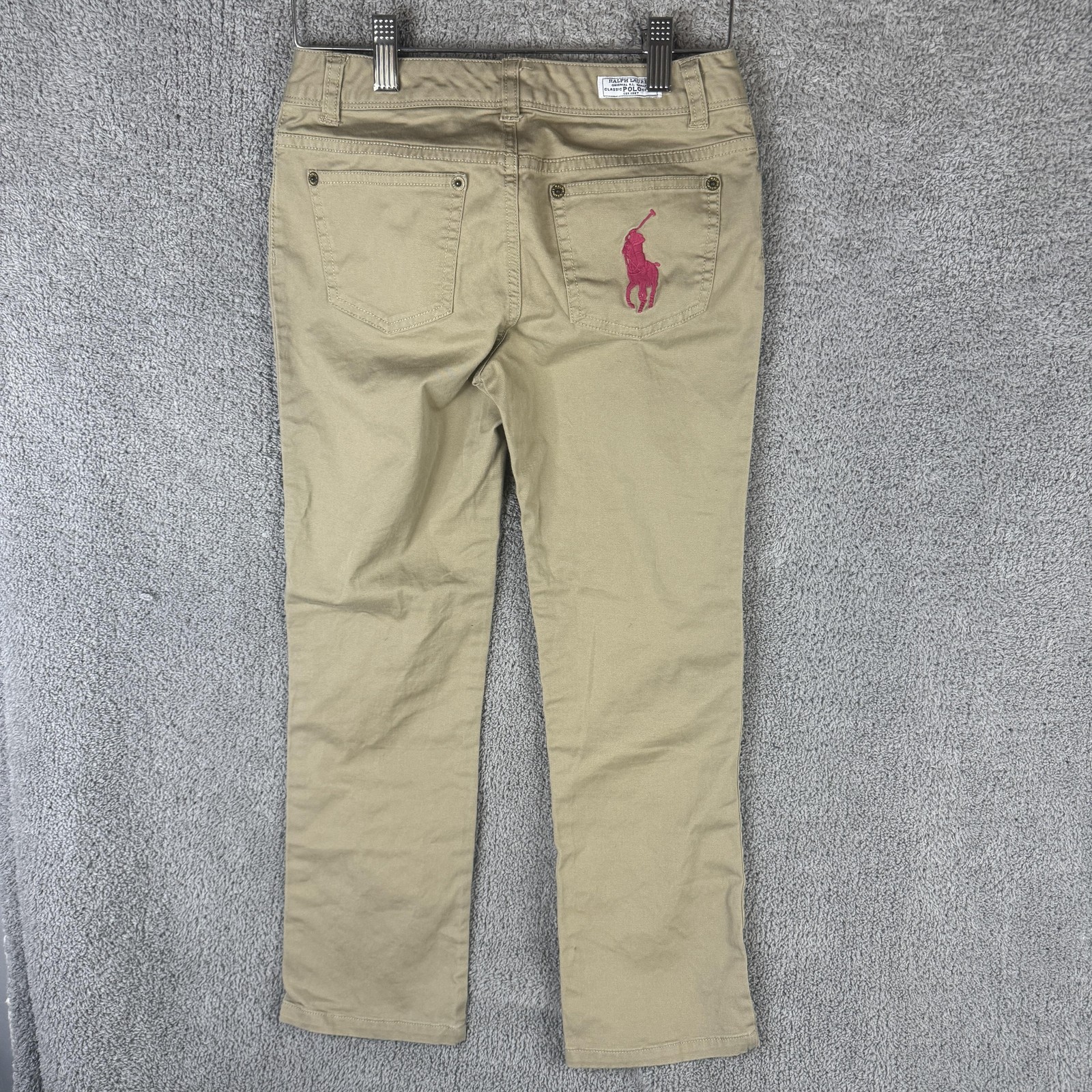 Polo Ralph Lauren Pants Kids 10 Beige Khaki Stretch Chino Pink Pony Logo Casual