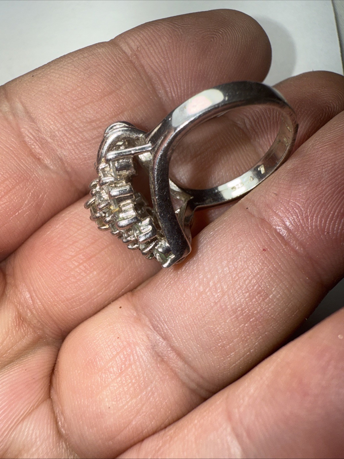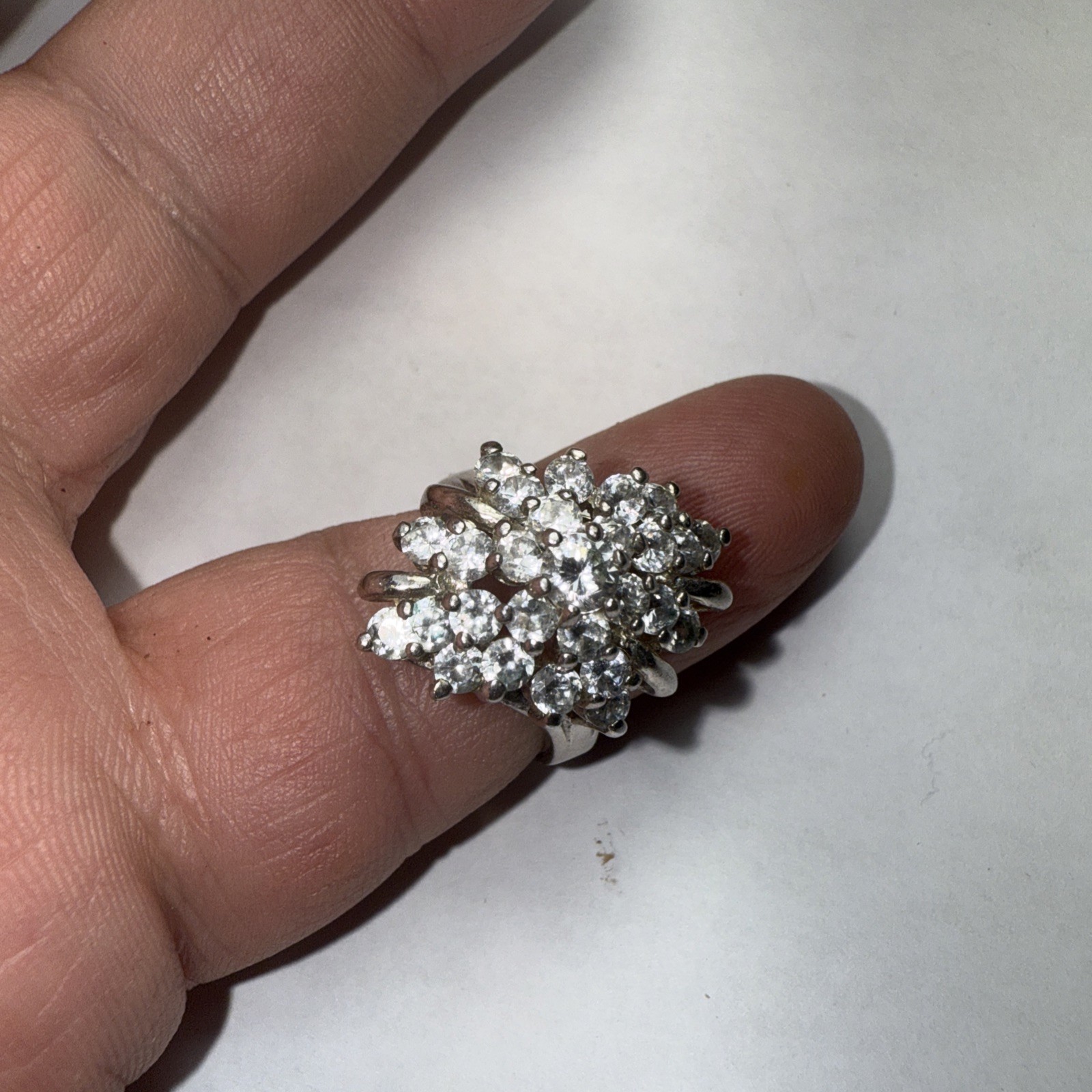 Ring Size 7 Sterling Cocktail Cluster Cubic Zirconia Vintage