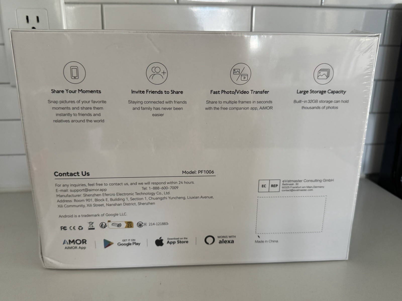 Amor Digital Photo Frame 10.1 Inch - 32GB - Alexa Google Apple Compatible - NEW