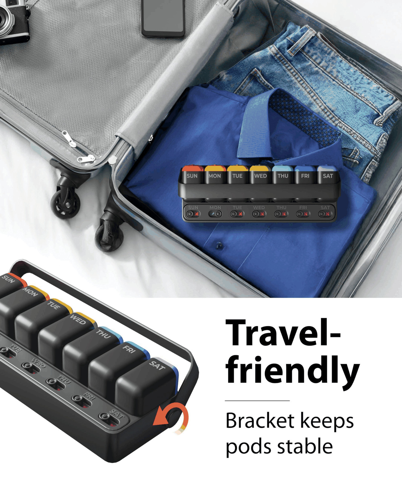 Weekly Pill Organizer 1 time a Day Pill Box 7 Day with Removable Daily
