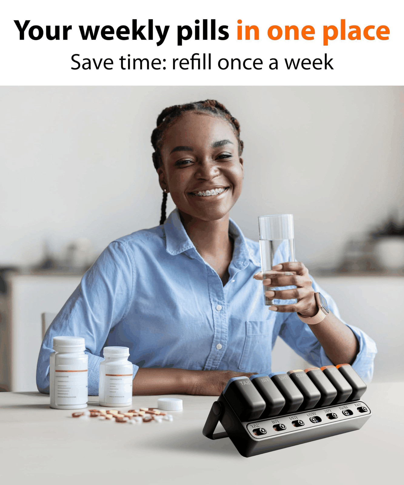 как выглядит Weekly Pill Organizer 1 time a Day  Pill Box 7 Day with Removable Daily фото