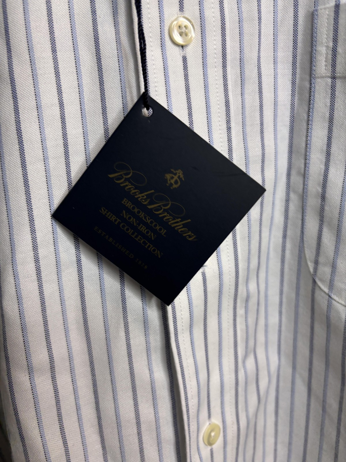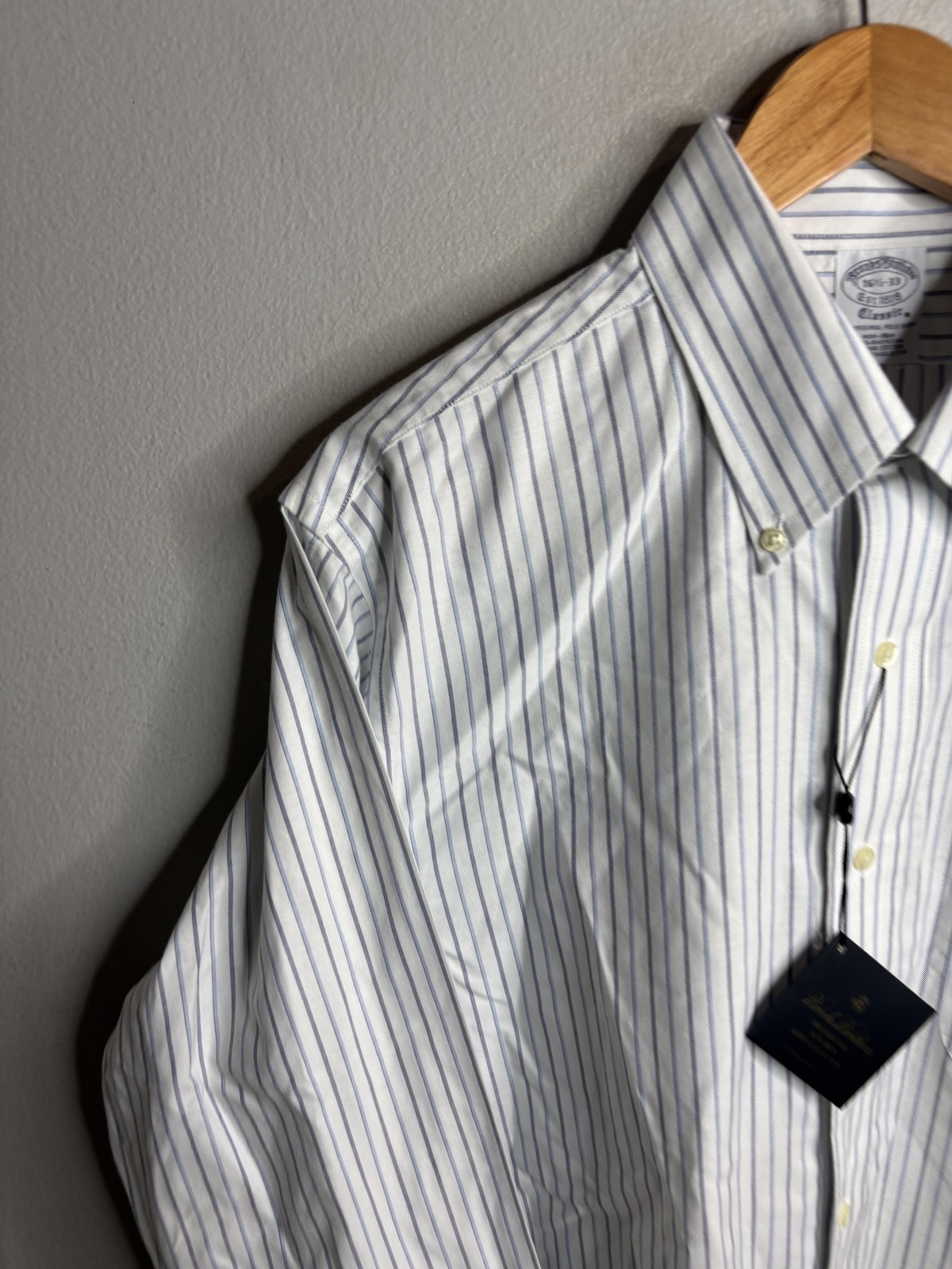 как выглядит Brooks Brothers Shirt Mens 16.5 32/33 White Stripe Non-Iron Supima Classic фото