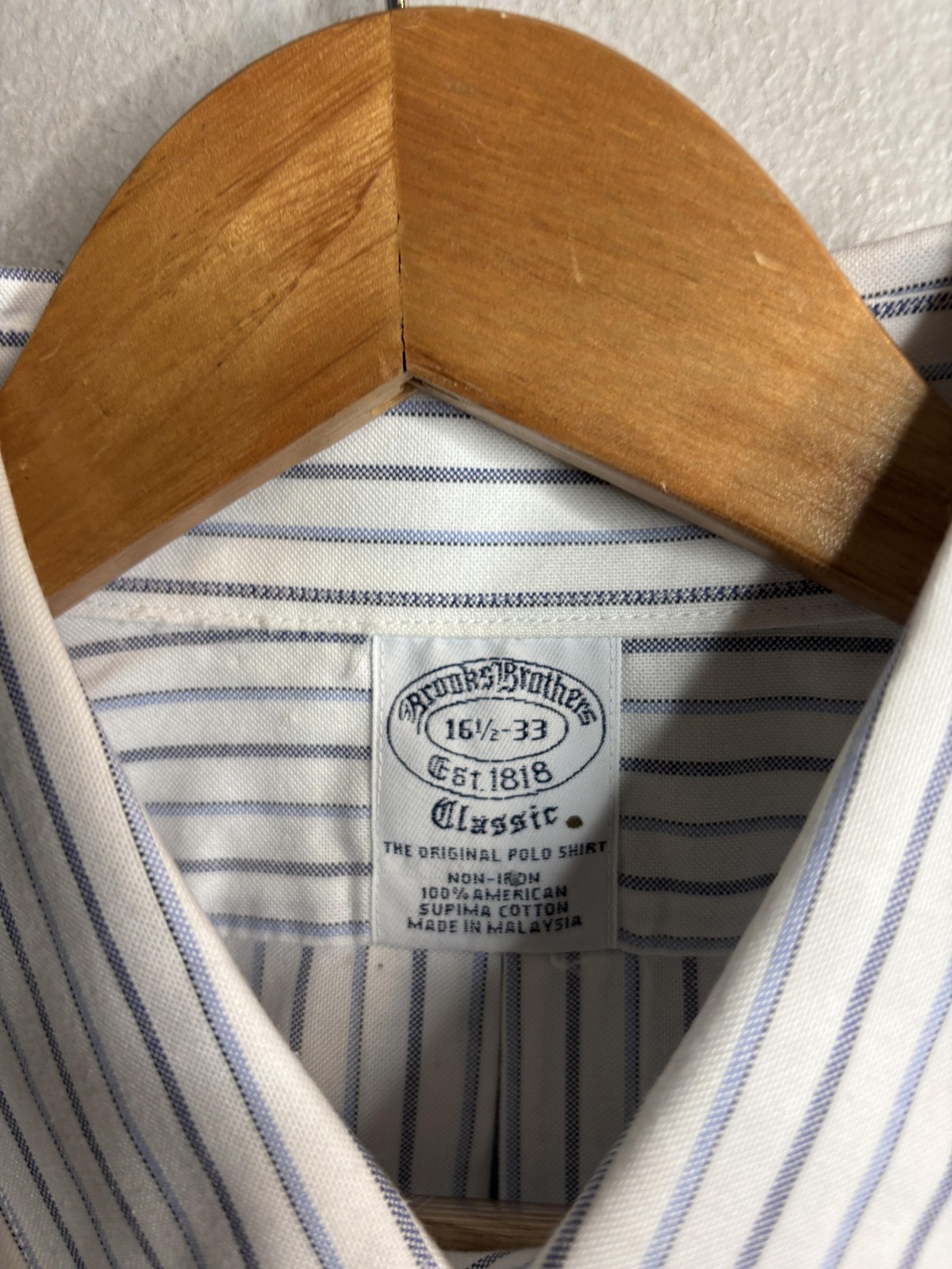 Brooks Brothers Shirt Mens 16.5 32/33 White Stripe Non-Iron Supima Classic