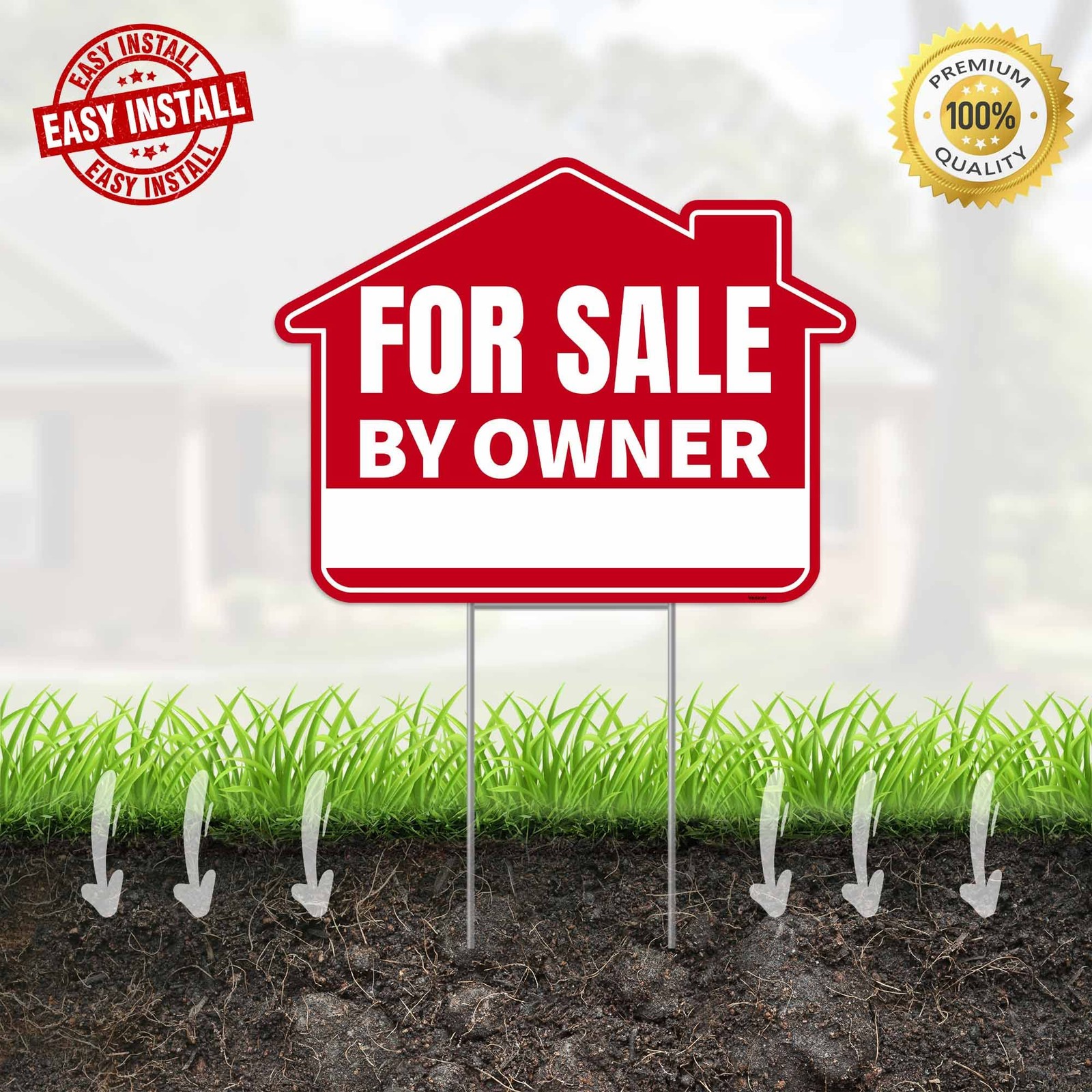 3PC For Sale By Owner Sign with Stakes, 17 Inches by 13 Inches - Double Sided