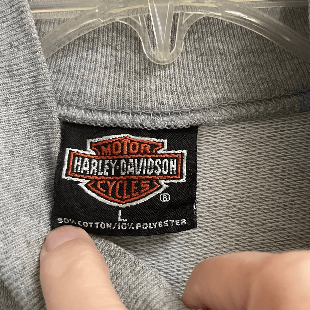 как выглядит Vintage Y2K Harley Davidson Snap Up Sweatshirt Women s L Jamestown Heather Gray фото