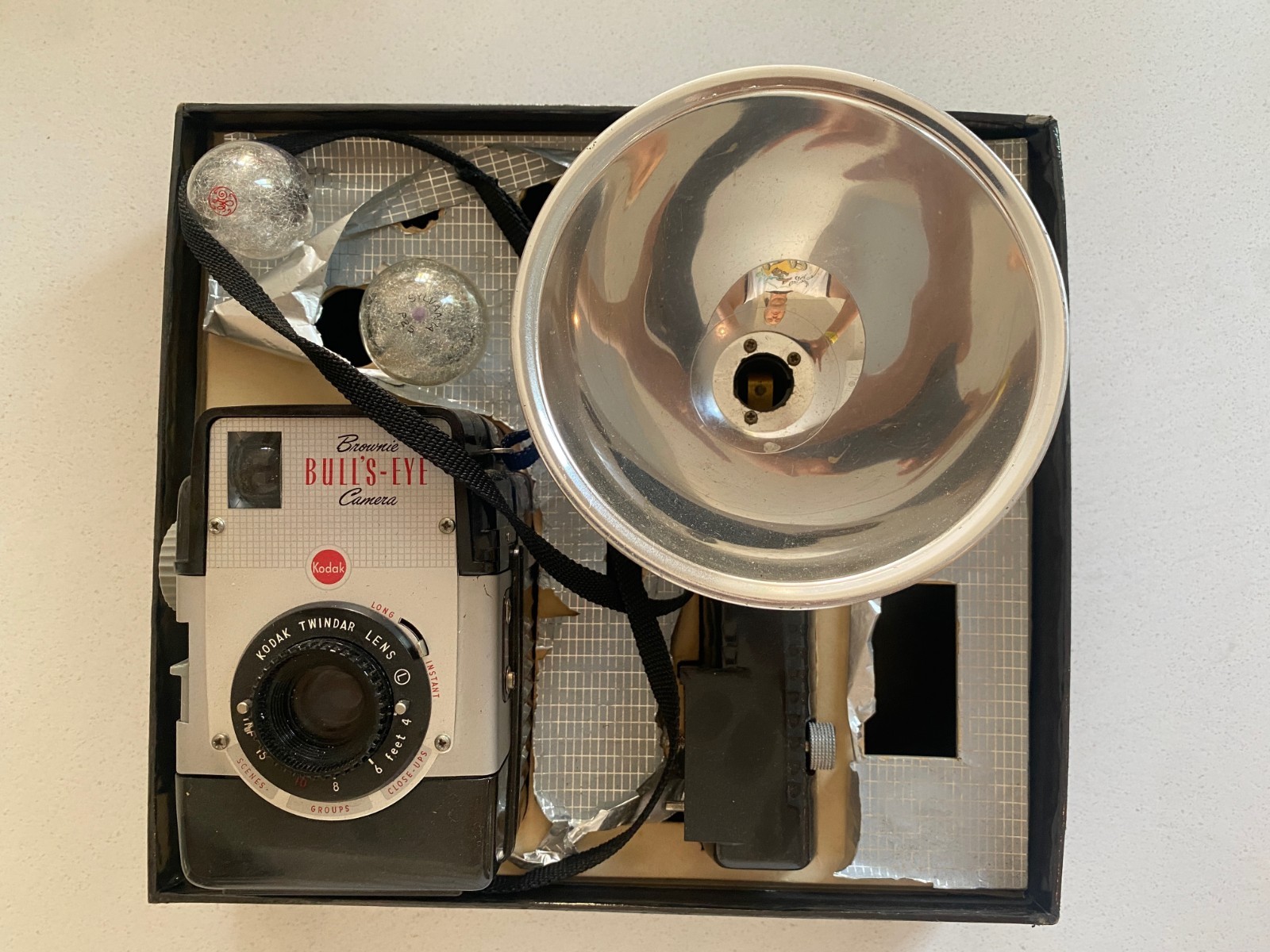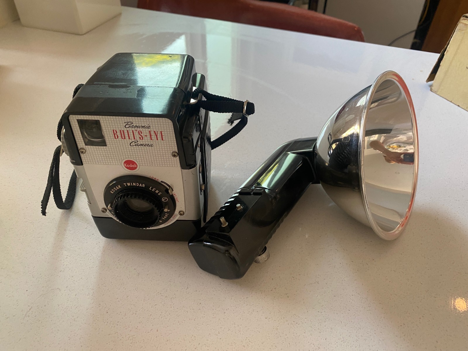 VINTAGE 1950s KODAK BROWNIE BULLS-EYE CAMERA/FLASH OUTFIT
