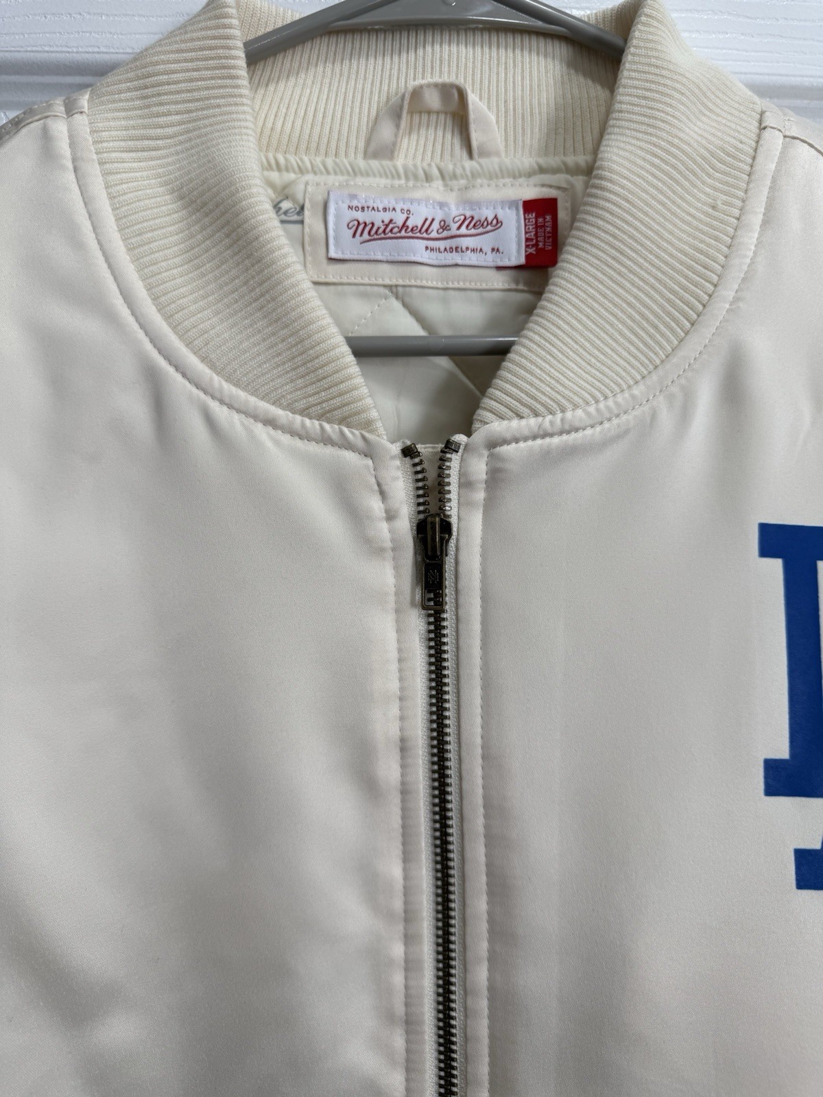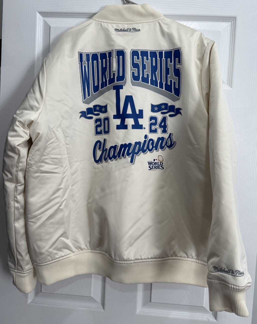 • LA Dodgers Mitchell Ness 2024 World Series Champions Cream Bomber Jacket XL