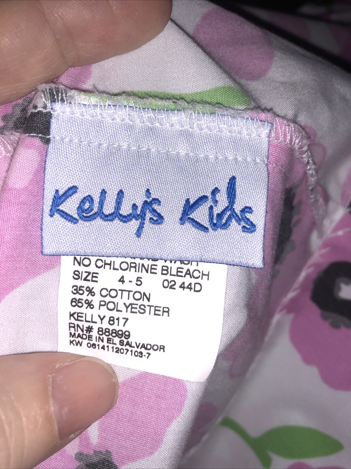 KELLY S KIDS Girl's pink flower bell sleeve dress gingham ruffle Size 4-5