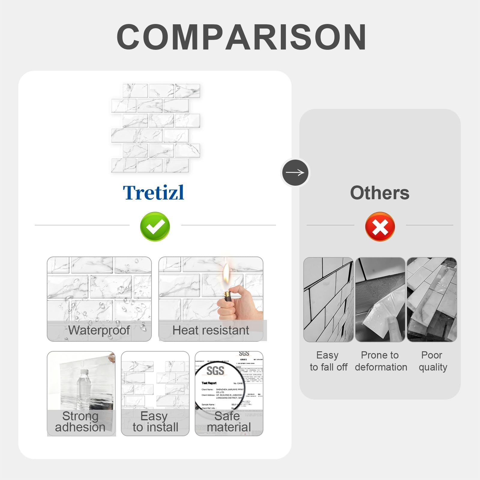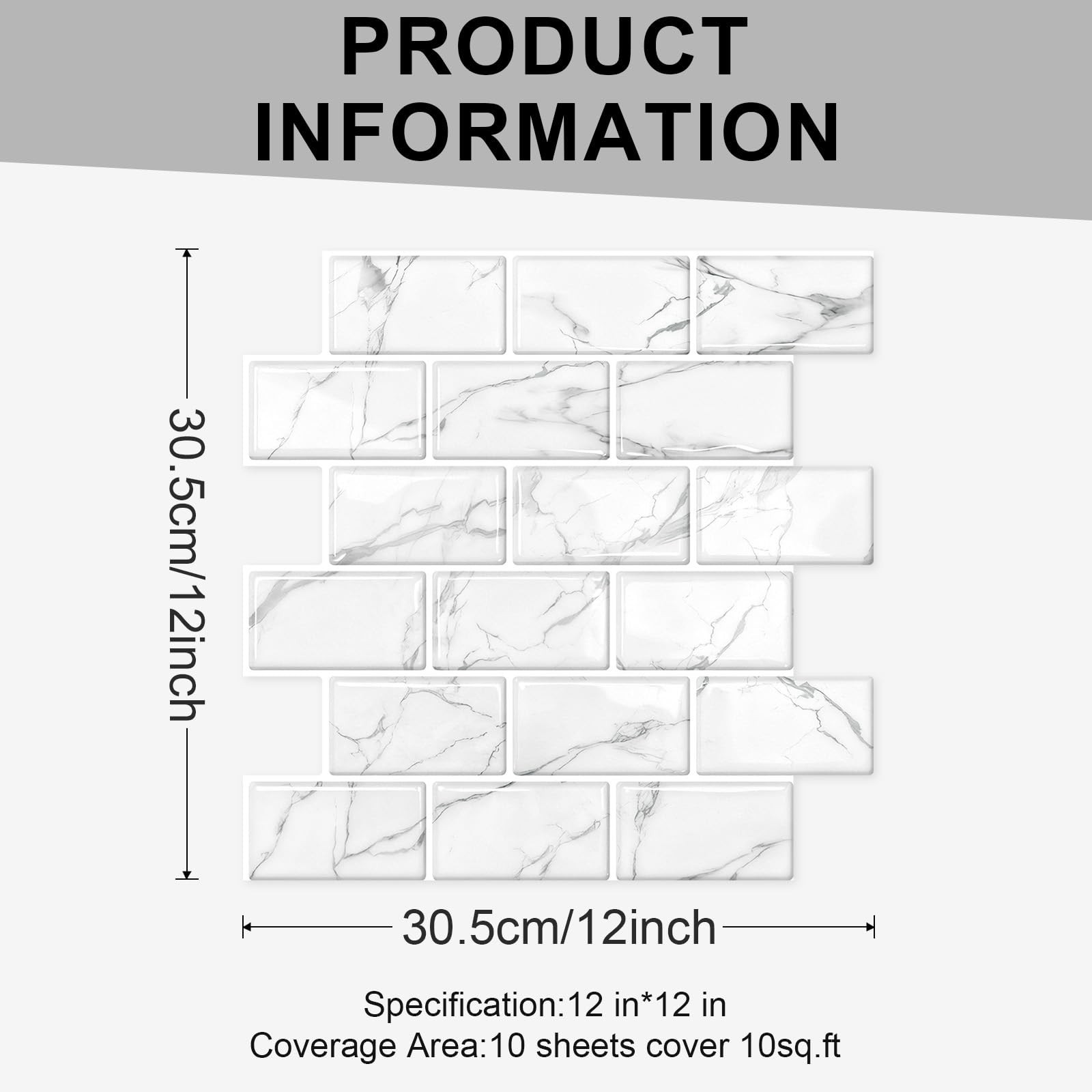 10 Sheets Thicker Design Peel and Stick Backsplash, Peel and Stick Wall Tiles...