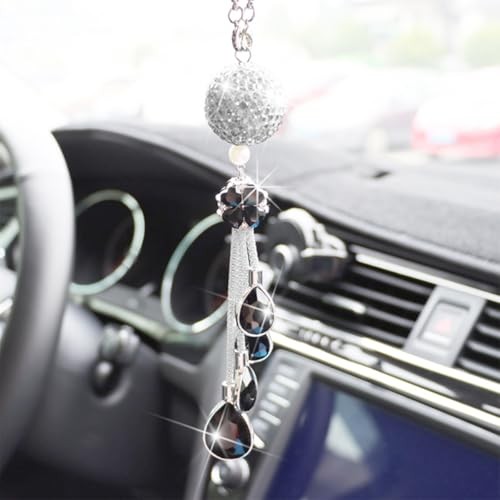 Bling Car Hanging, Crystal Rinestones Diamond Lucky Clover Auto Rear View Black