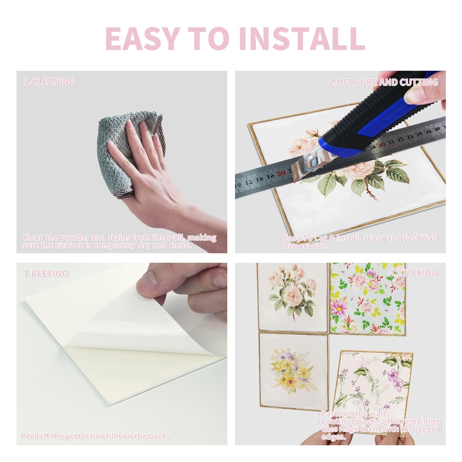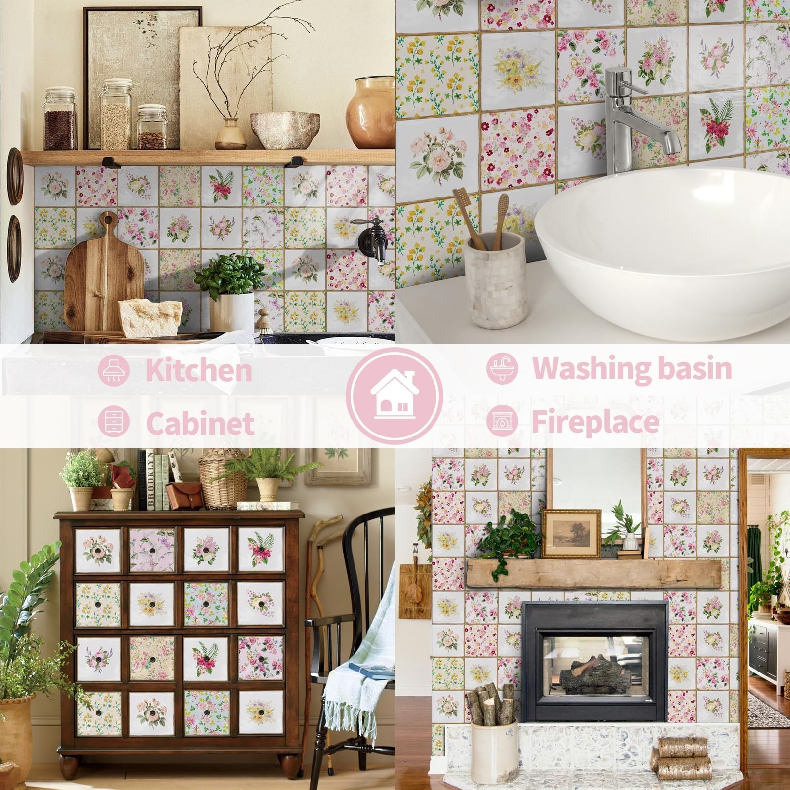 Peel and Stick Backsplash Pink Tile Stickers - 12Pcs 5.9x5.9 Inch Removable W...