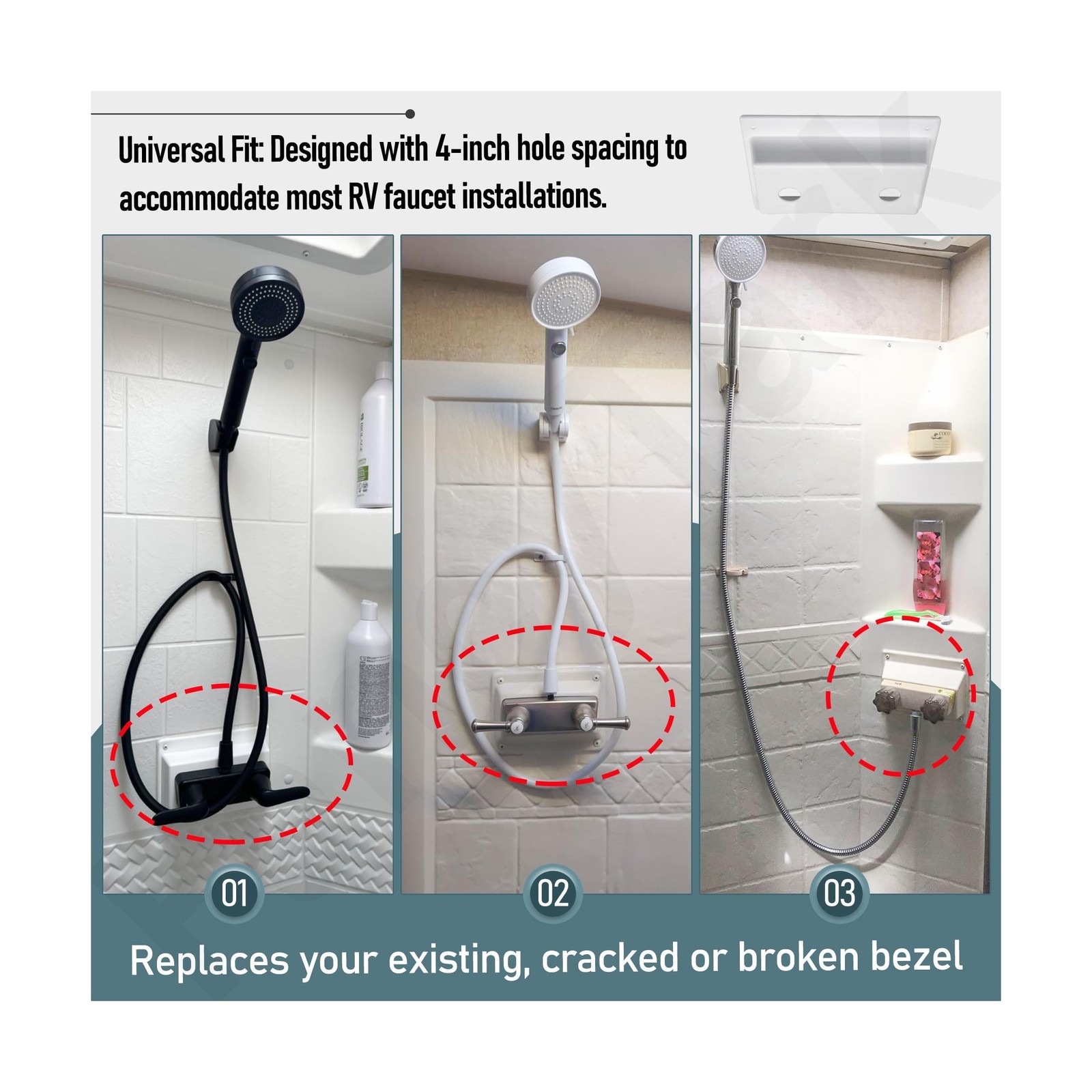 White Faucet Bezel Stand Off Faucet Cover for RV Caravans Shower RV Camper Tr...