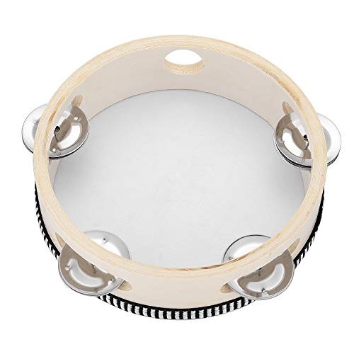 Hand Held Tambourine Drum 6 inch Bell Birch Metal Jingles 6 inch drum