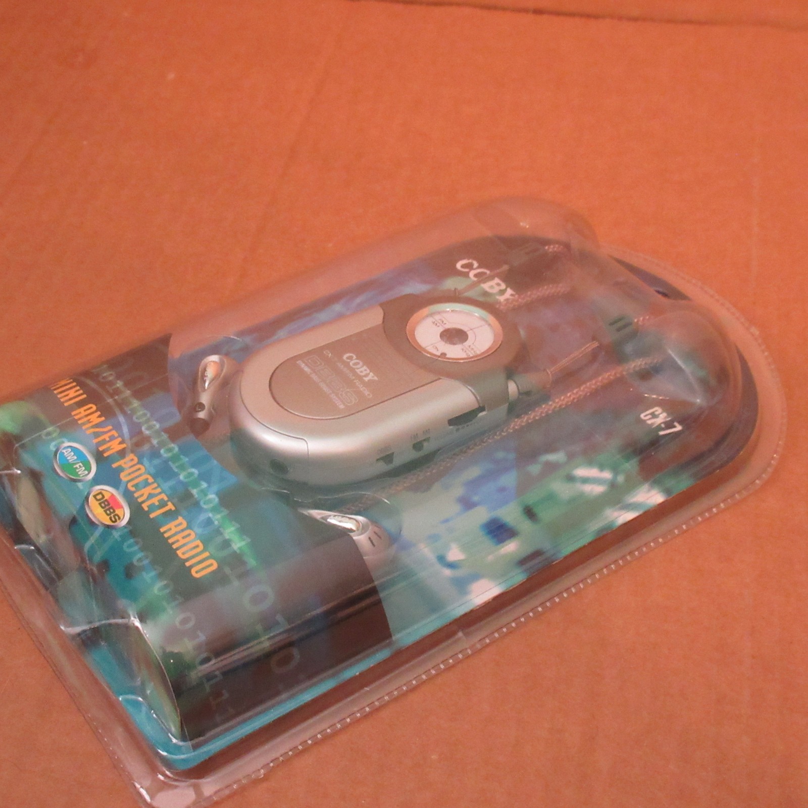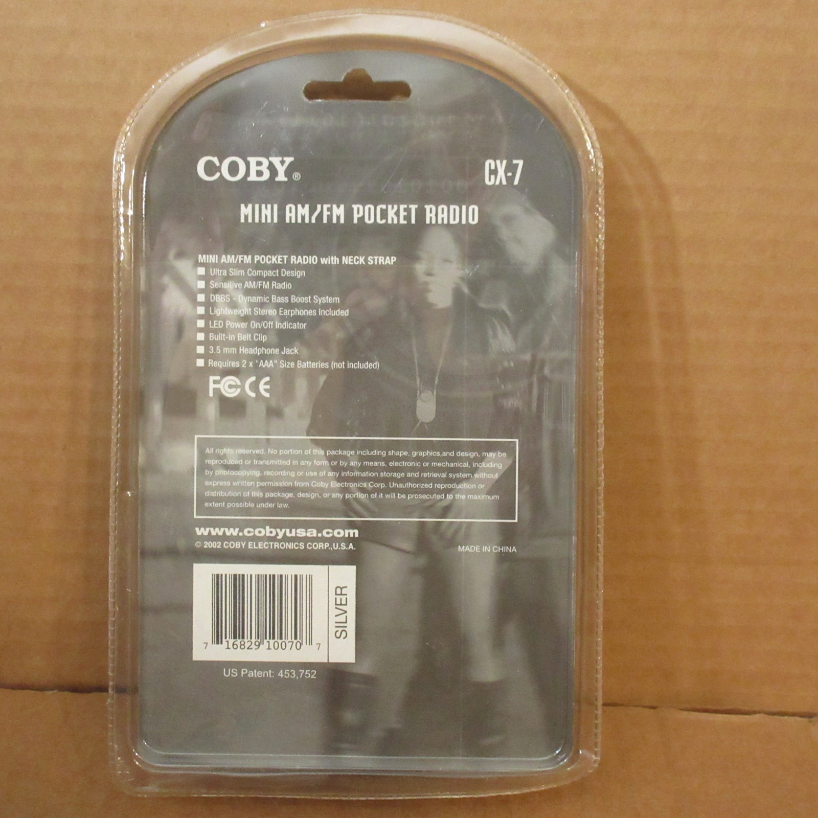 Vtg NOS Coby Dynamic Bass Boost SILVER CX-7 AM/FM Radio Mini Pocket Radio Earbud