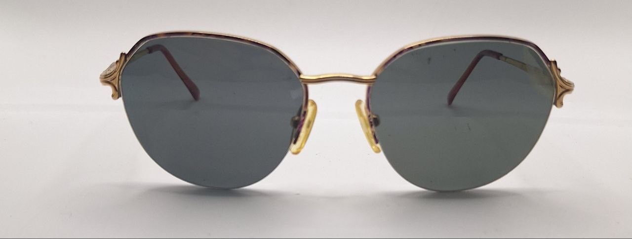 как выглядит Vintage Joan Collins J-268 Gold Purple Oval Half Rim Sunglasses FRAMES ONLY фото