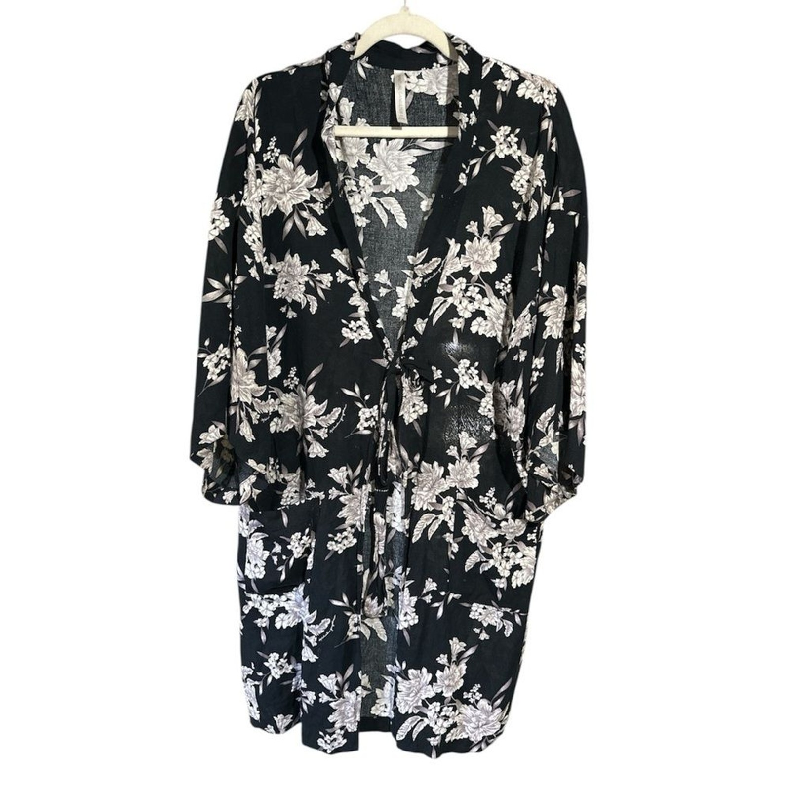 как выглядит Spiritual Gangster Maya black floral print kimono фото