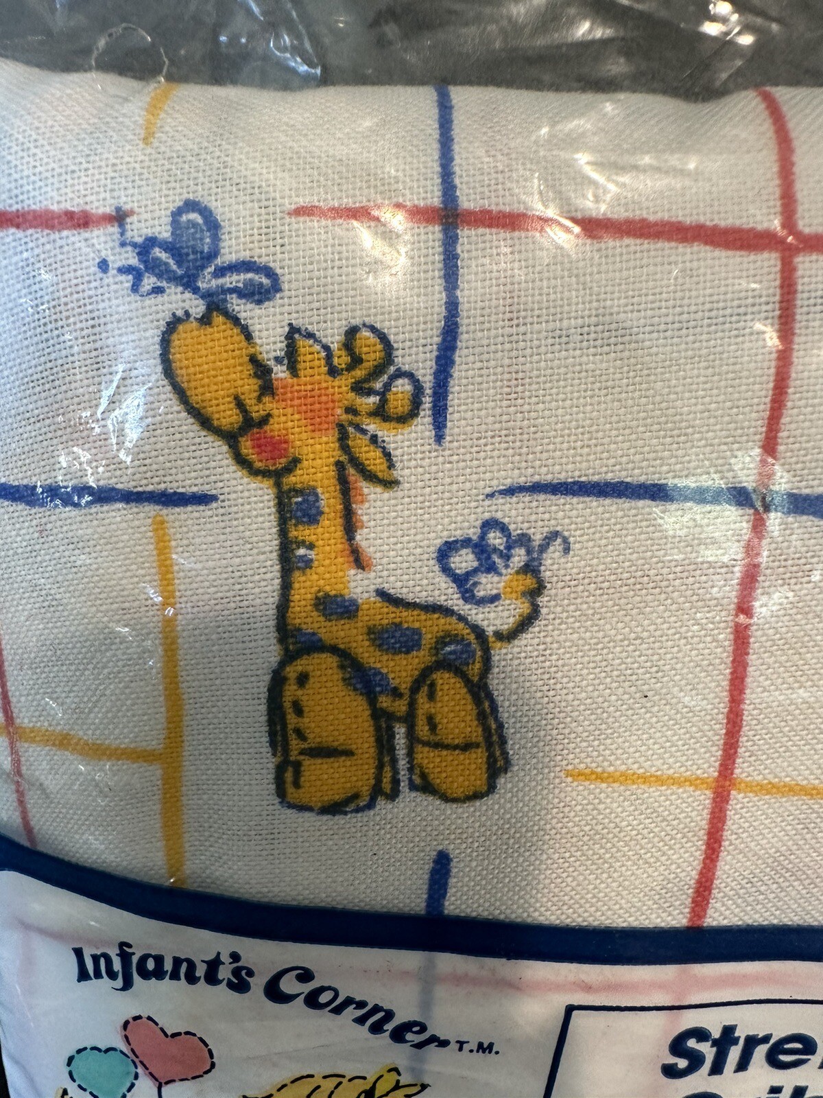 как выглядит Baby Crib Sheets Giraffes Turtles NOS Package Is Open Vintage фото