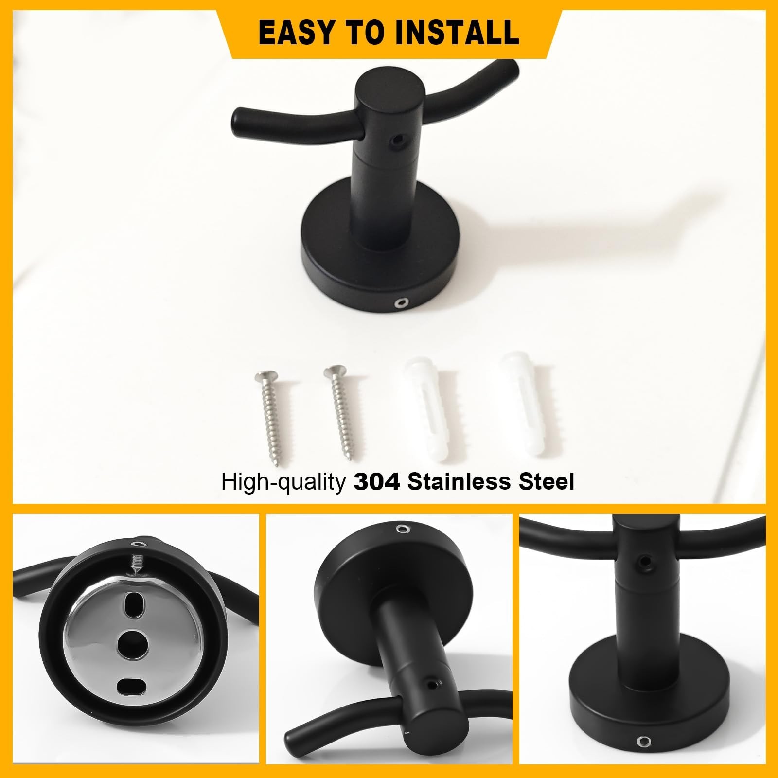 как выглядит 2 Pack Towel Hooks for Bathroom, Screw in Stainless Steel Wall Hooks for Hang... фото