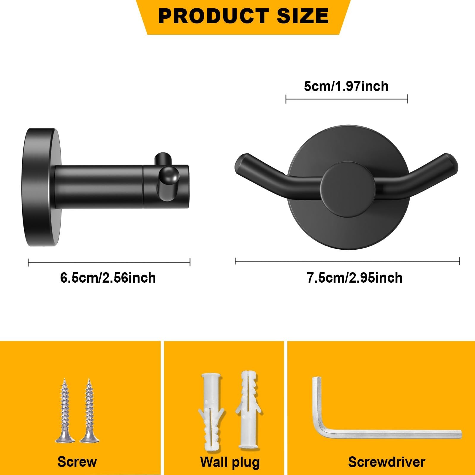 2 Pack Towel Hooks for Bathroom, Screw in Stainless Steel Wall Hooks for Hang...