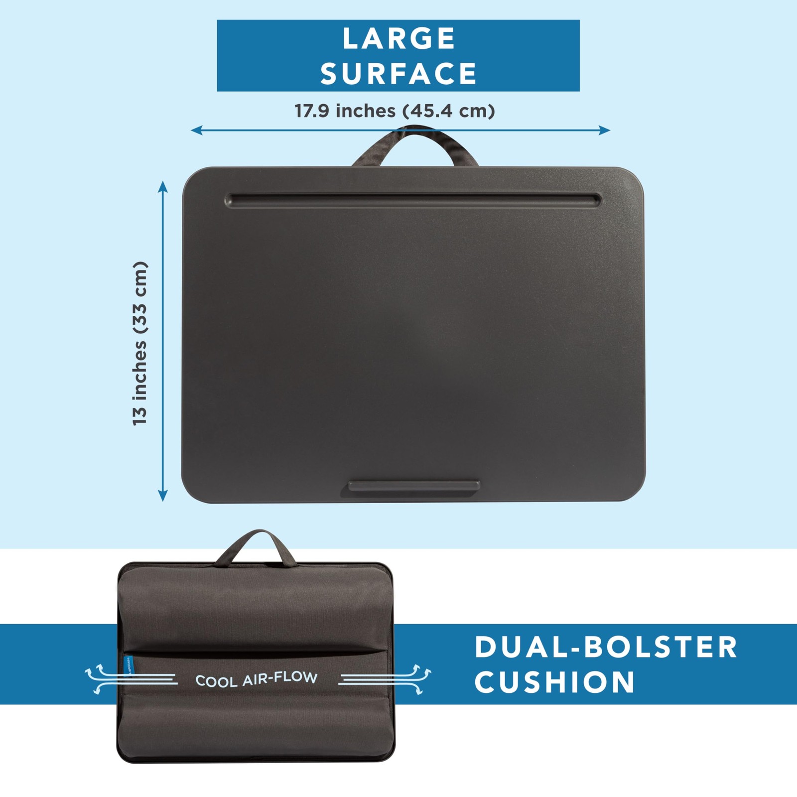 LAPGEAR Original Lap Desk Large 17.9 x 13 Fits Single Unit, Charcoal