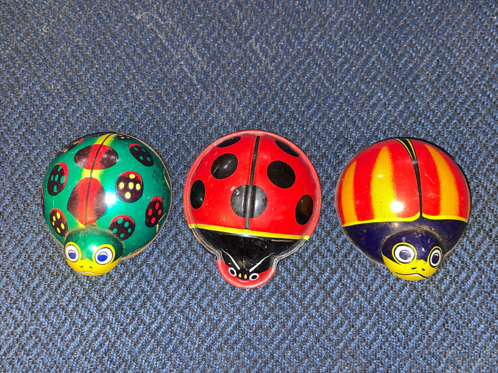 Bug Friction Tin Toys Made in Japan Ladybug Lot Of 3