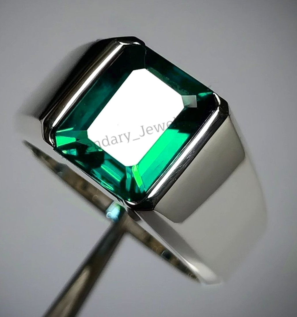 Men s Emerald Statement Ring 925 Sterling Silver Handmade Green Gemstone Ring