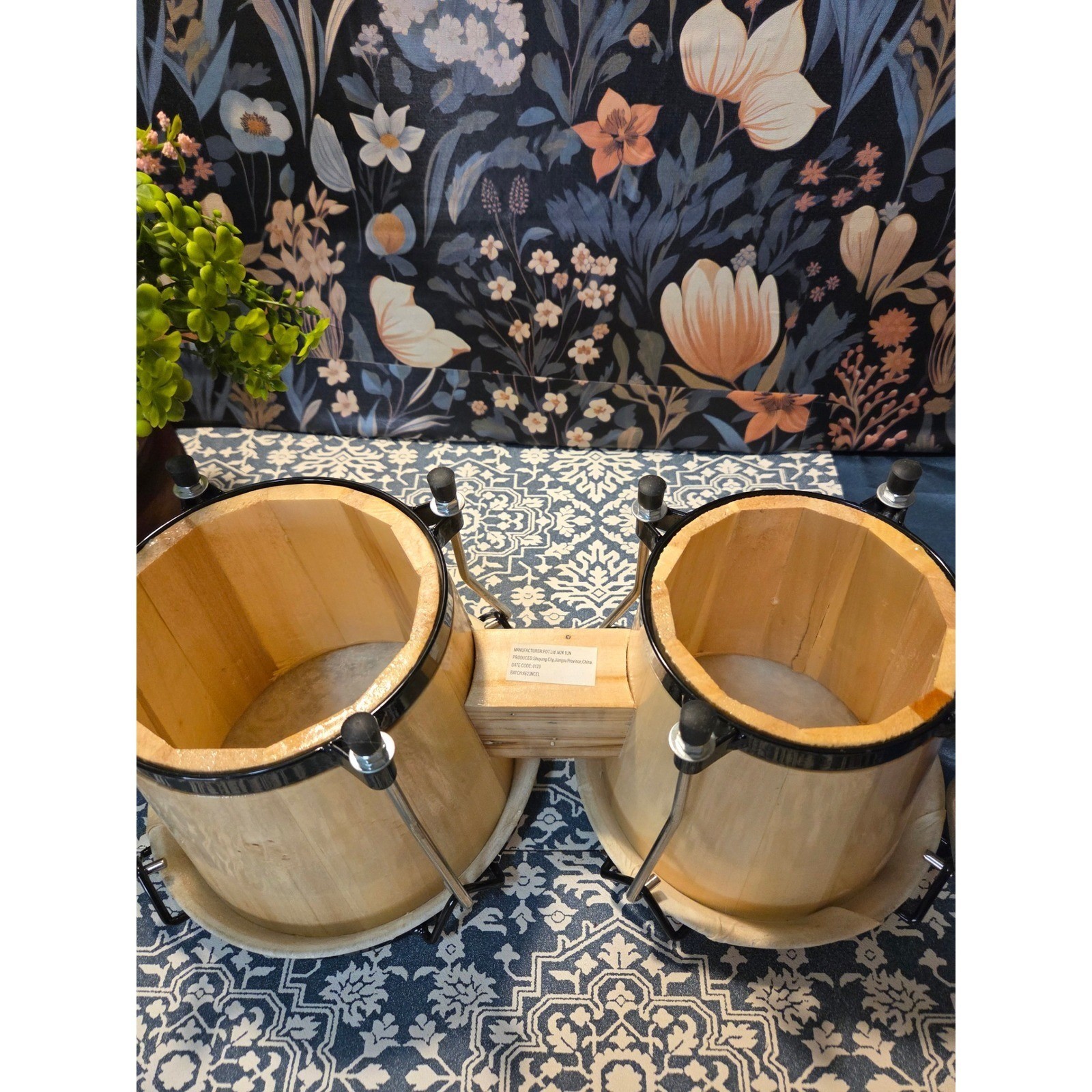 Rockjam Bongo Drum Set Natural Wood Percussion with Carry Case